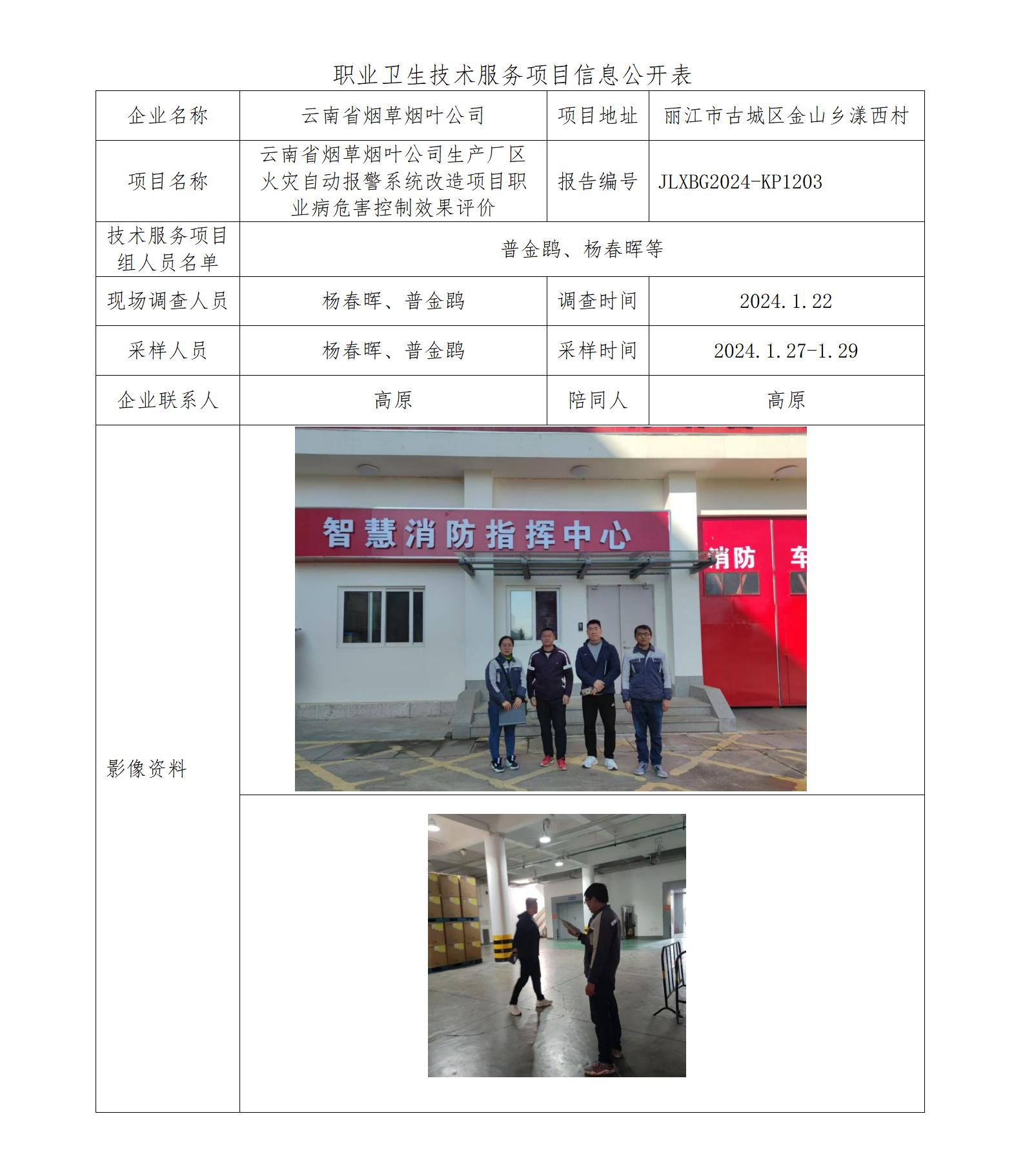 云南省烟草烟叶公司生产厂区火灾自动报警系统改造项目职业病危害控制效果评价
