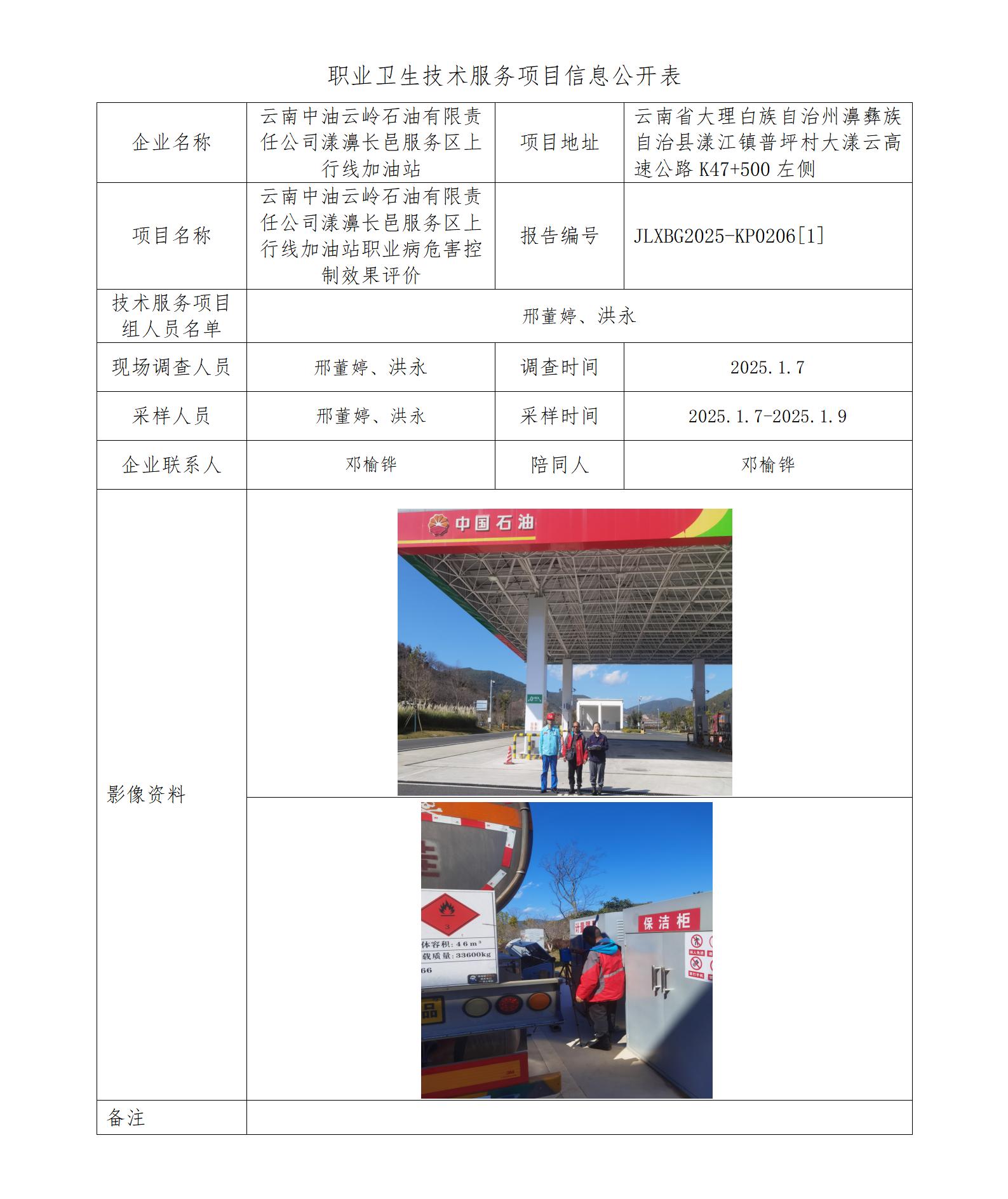 云南中油云岭石油有限责任公司漾濞长邑服务区上行线加油站职业病危害控制效果评价