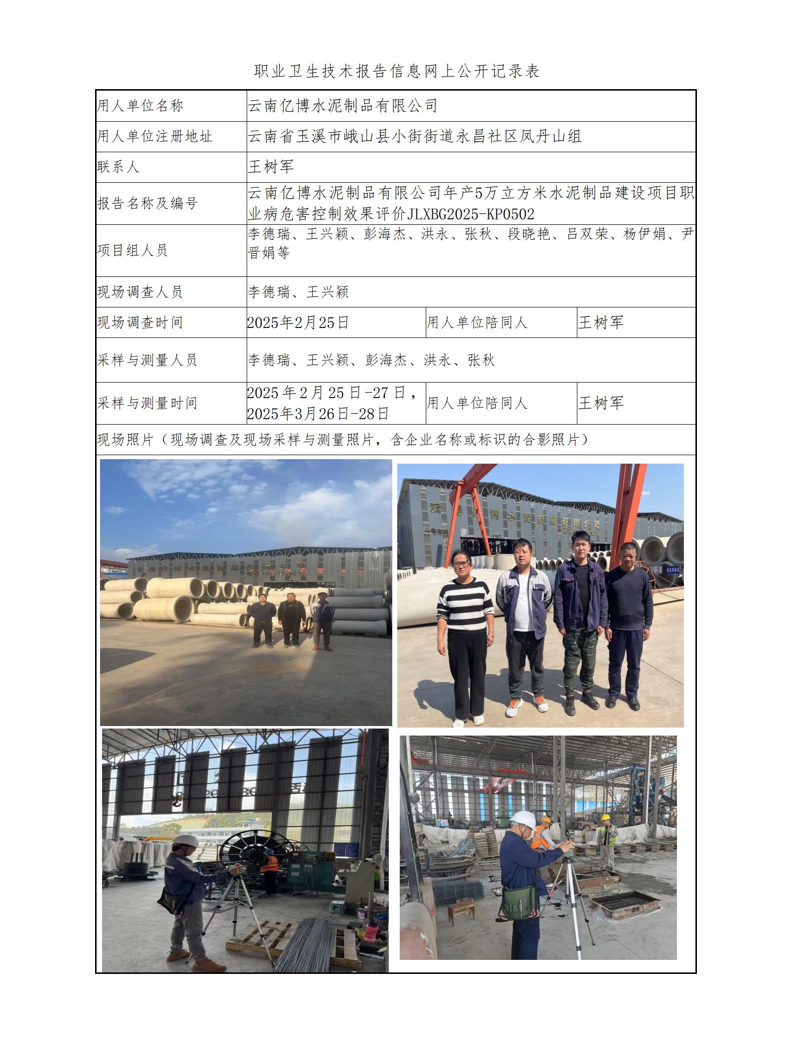云南亿博水泥制品有限公司年产5万立方米水泥制品建设项目职业病危害控制效果评价
