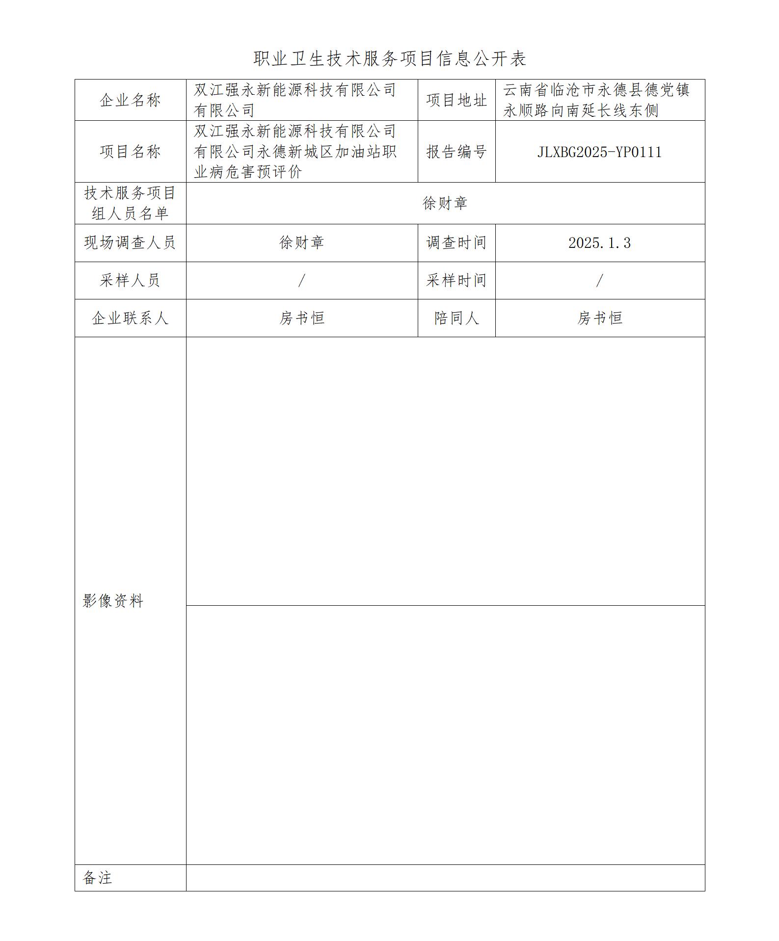 双江强永新能源科技有限公司有限公司永德新城区加油站职业病危害预评价
