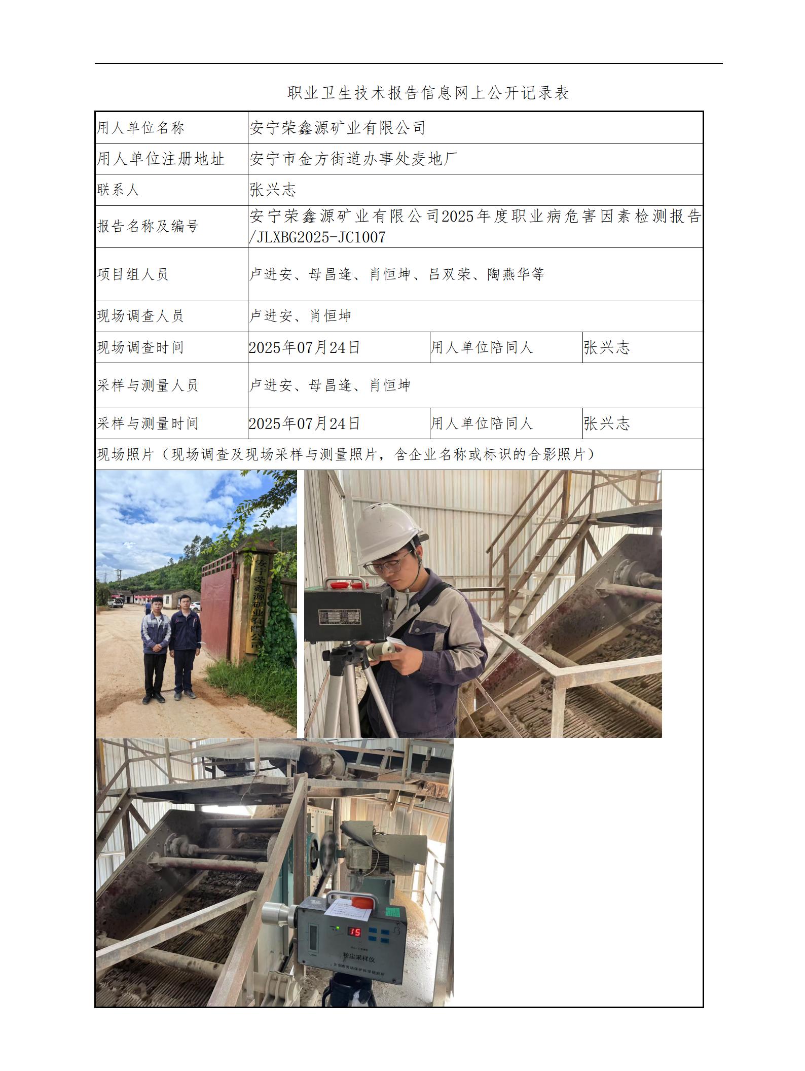 安宁荣鑫源矿业有限公司2025年度职业病危害因素检测报告