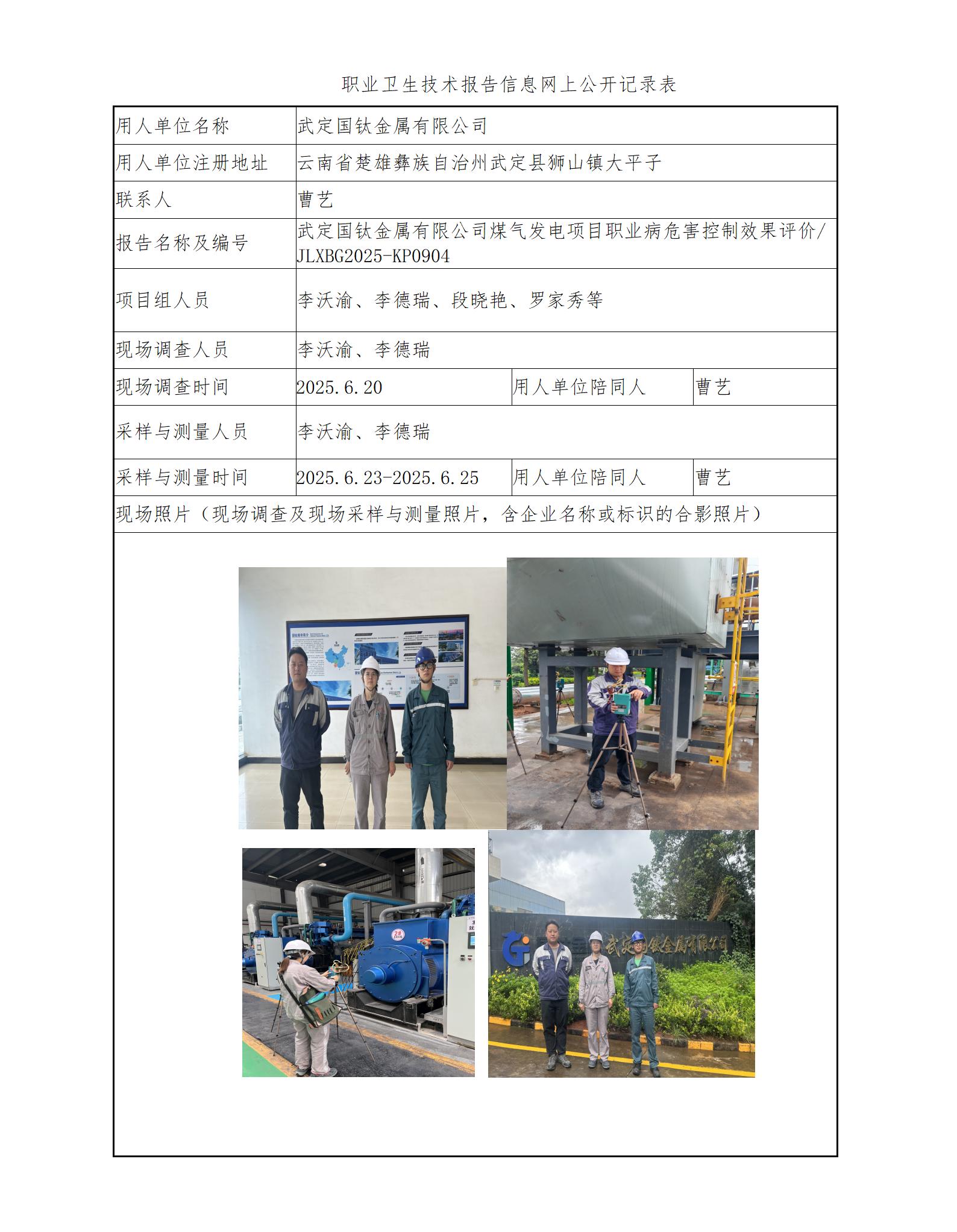 武定国钛金属有限公司煤气发电项目职业病危害控制效果评价