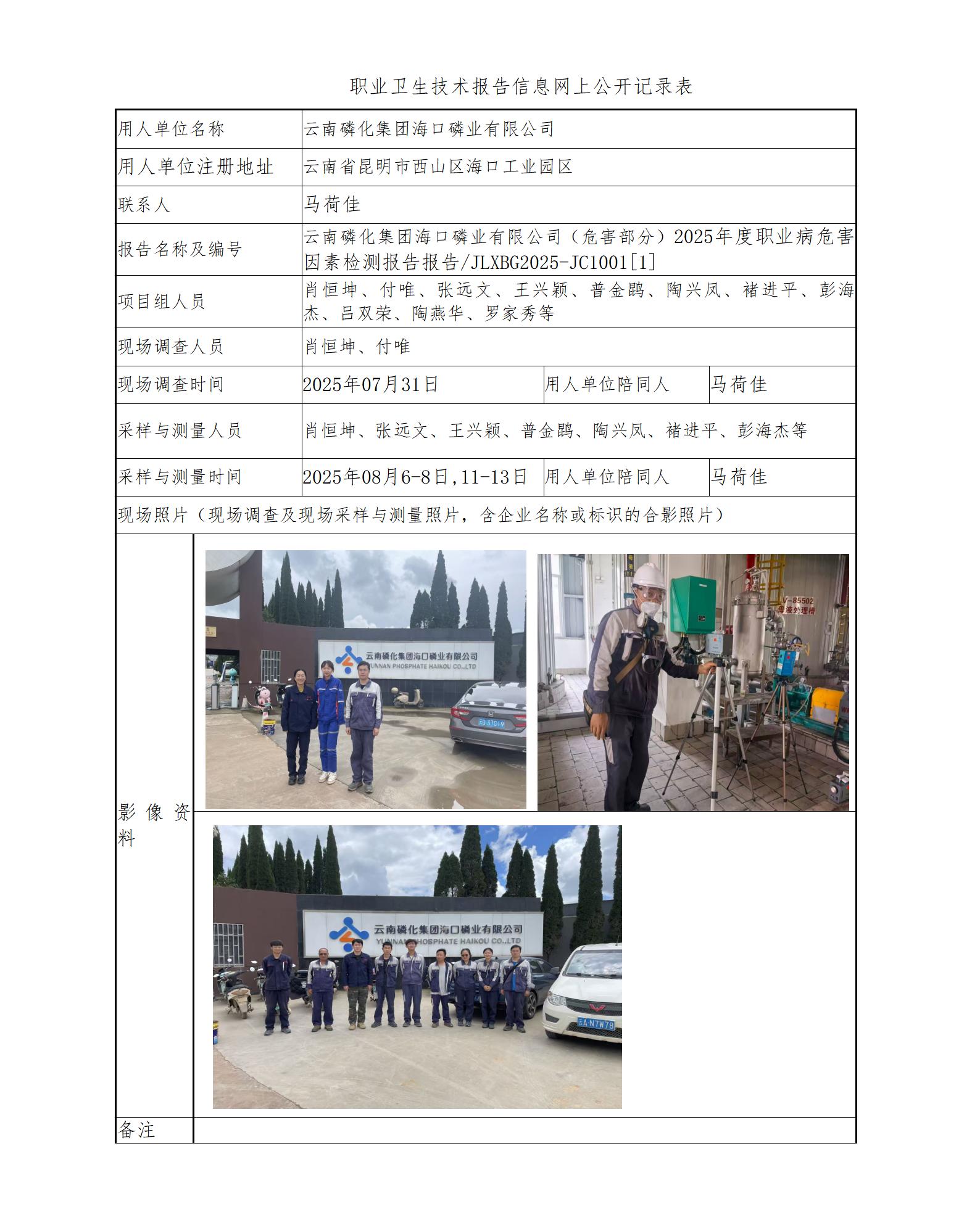 云南磷化集团海口磷业有限公司(危害部分)2025年度职业病危害因素检测报告报告