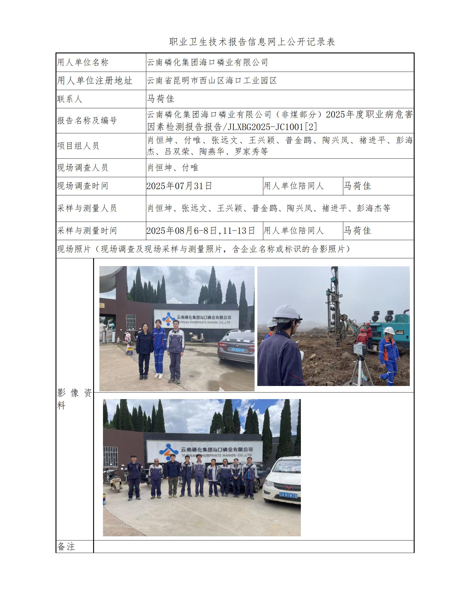 云南磷化集团海口磷业有限公司(非煤部分)2025年度职业病危害因素检测报告报告