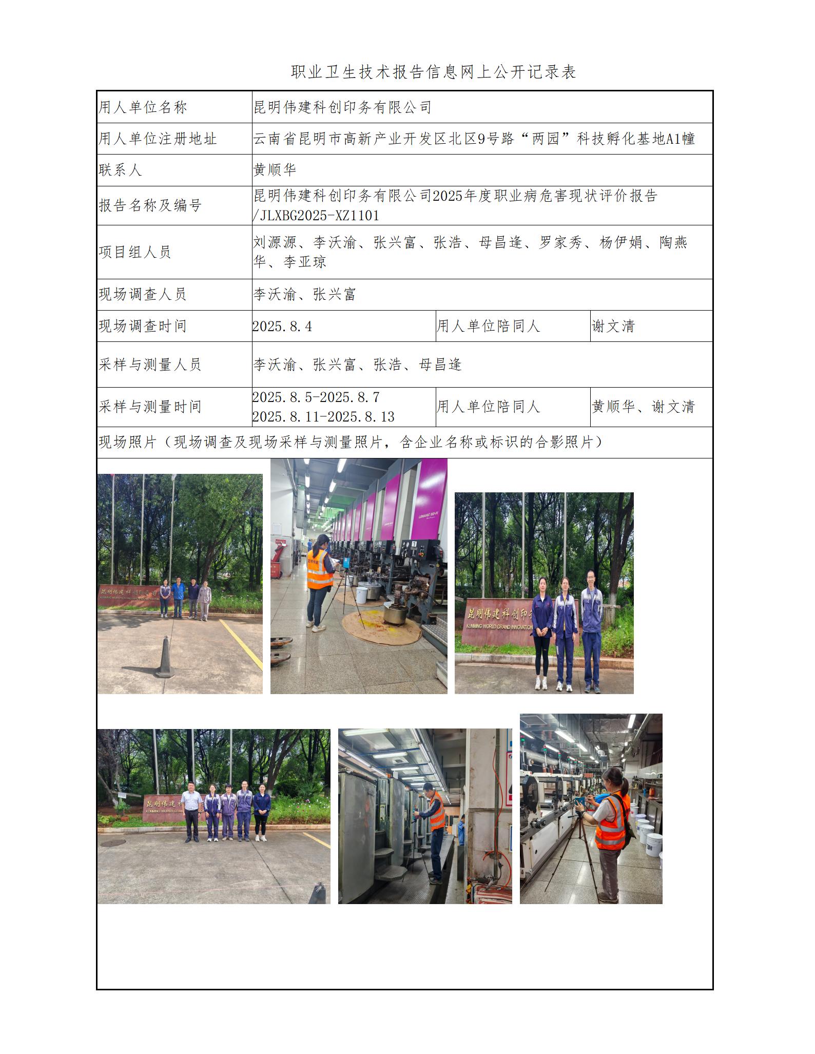 昆明伟建科创印务有限公司2025年度职业病危害现状评价报告