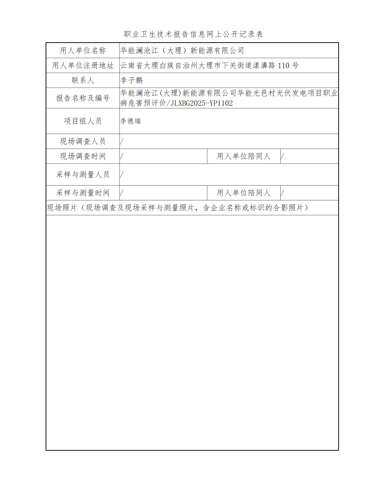 华能澜沧江(大理)新能源有限公司华能光邑村光伏发电项目职业病危害预评价
