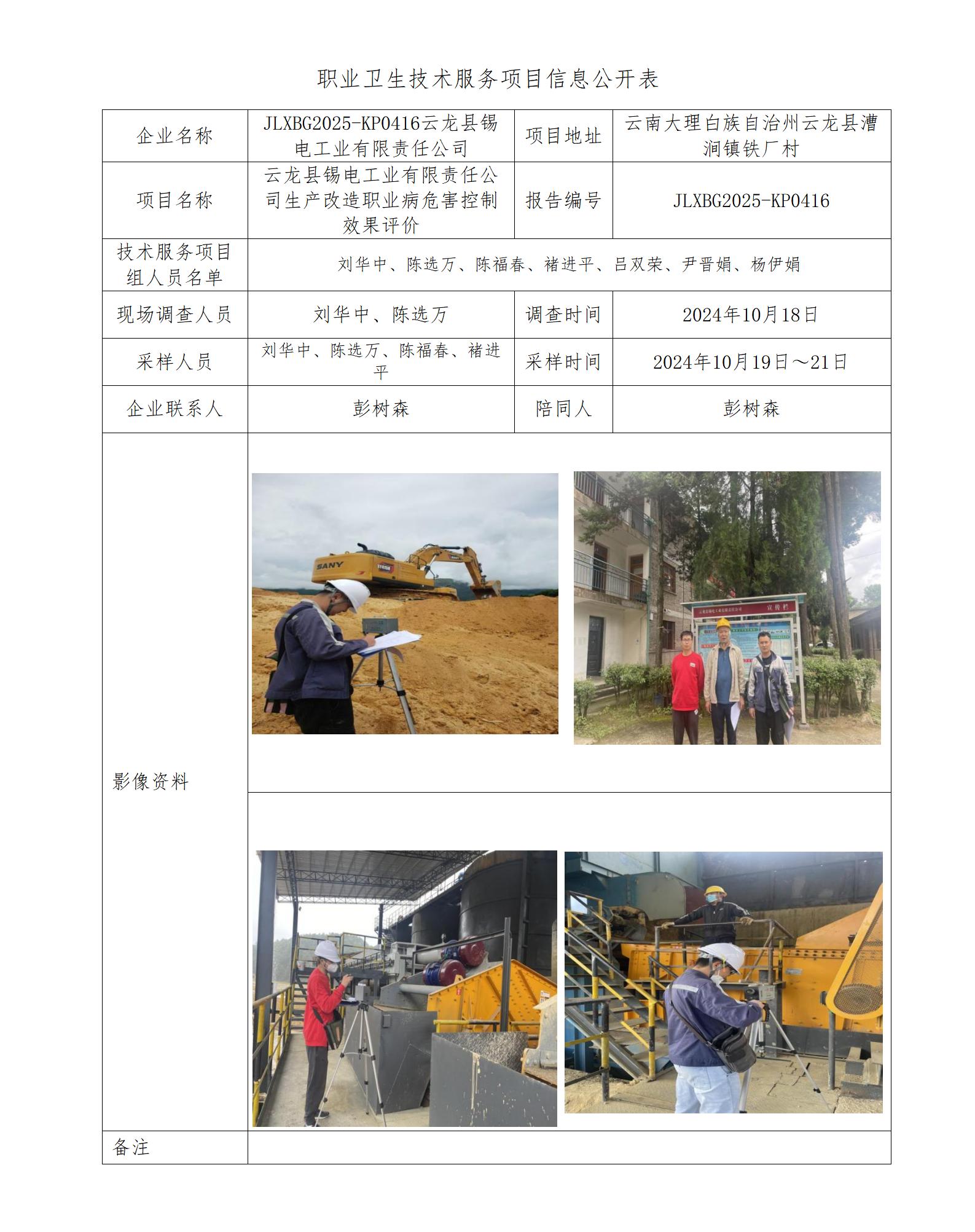 云龙县锡电工业有限责任公司生产改造职业病危害控制效果评价