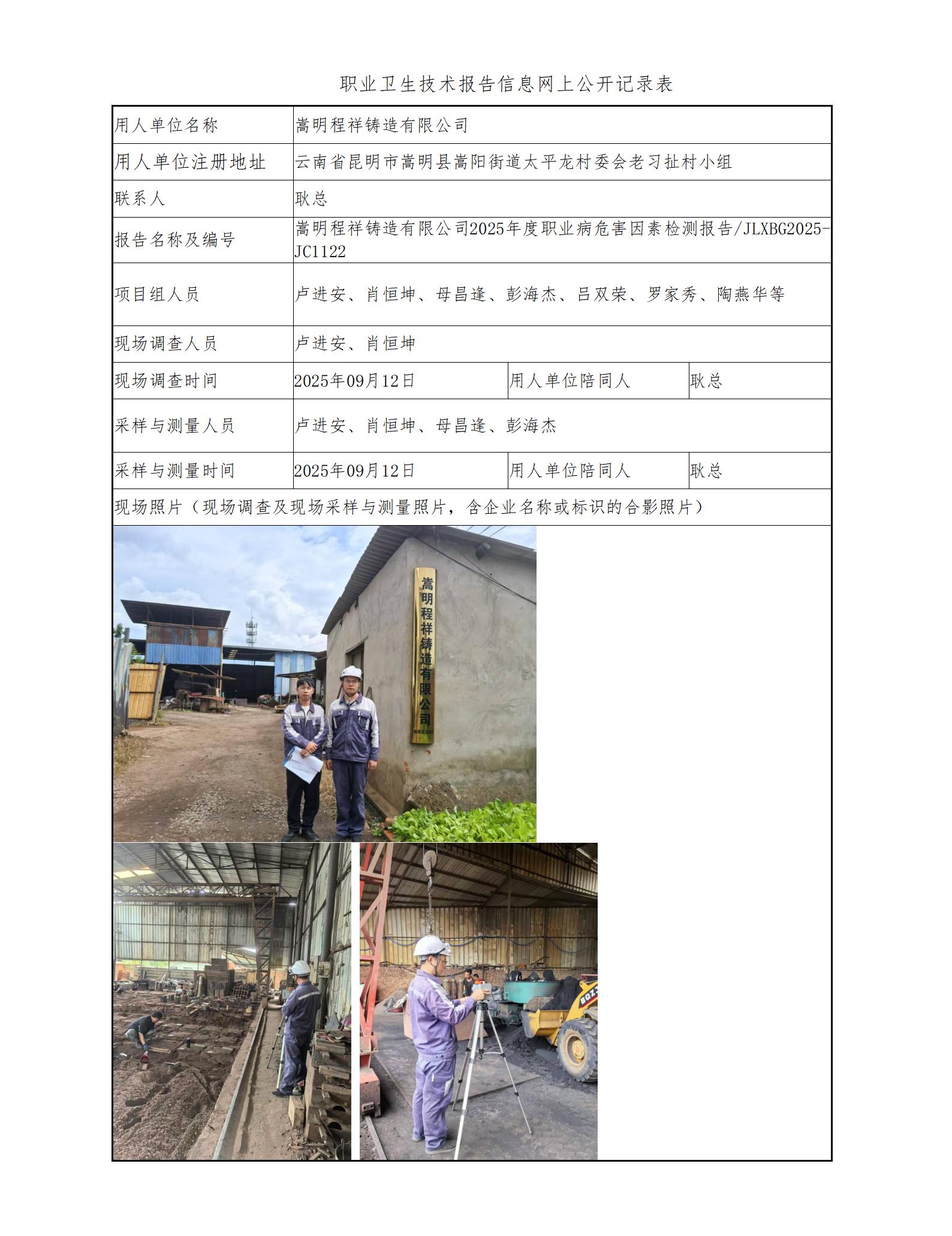 嵩明程祥铸造有限公司2025年度职业病危害因素检测报告