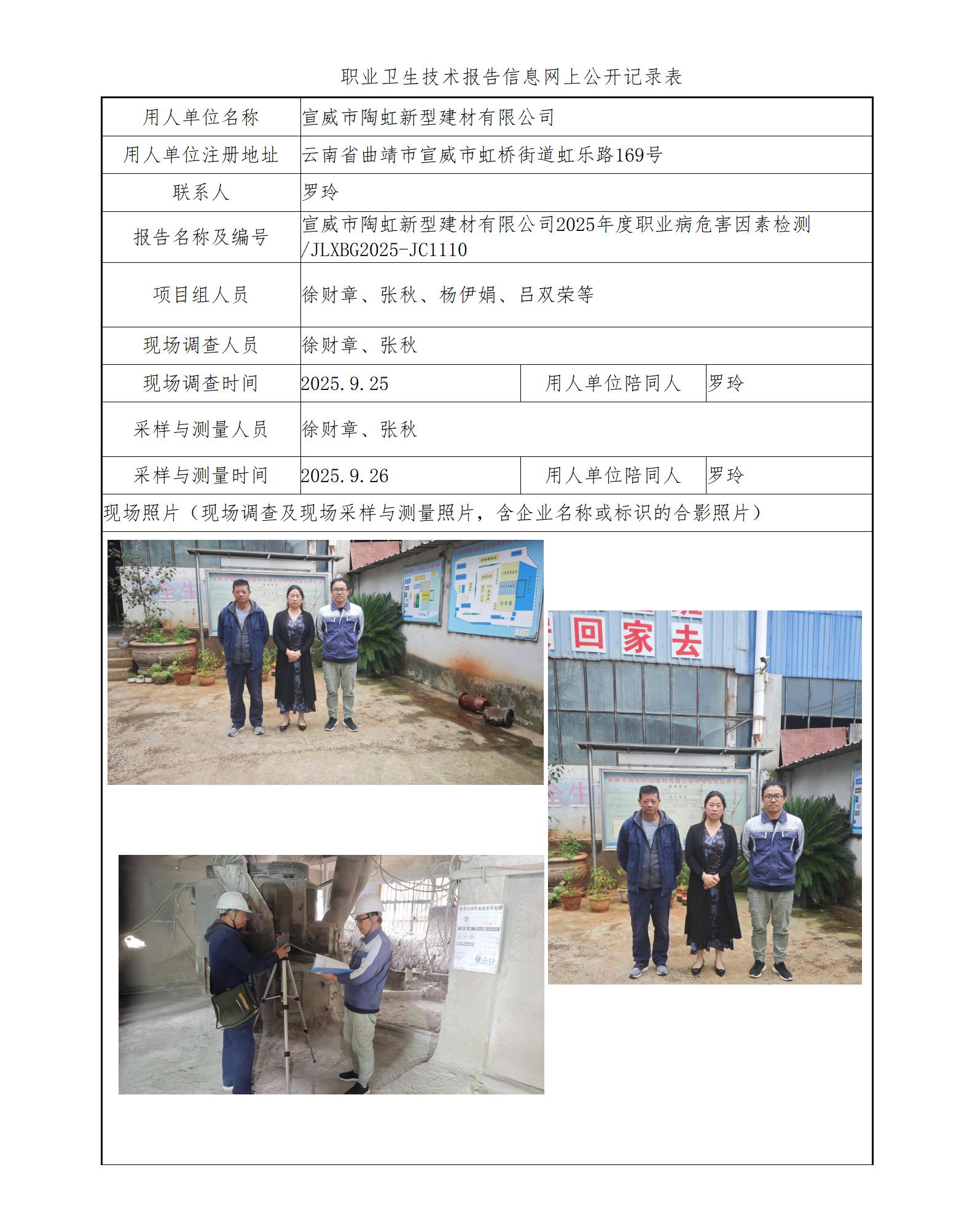 宣威市陶虹新型建材有限公司2025年度职业病危害因素检测