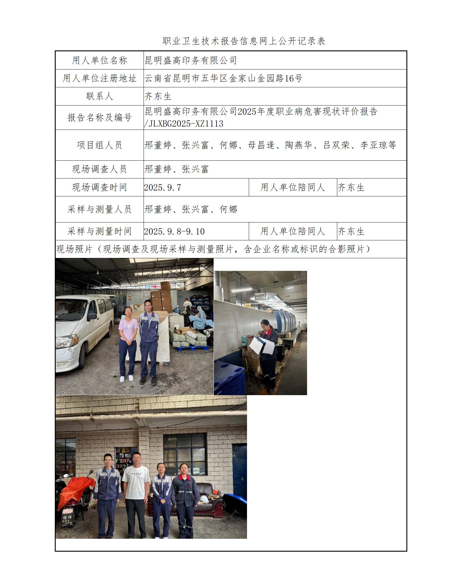 昆明盛高印务有限公司2025年度职业病危害现状评价报告