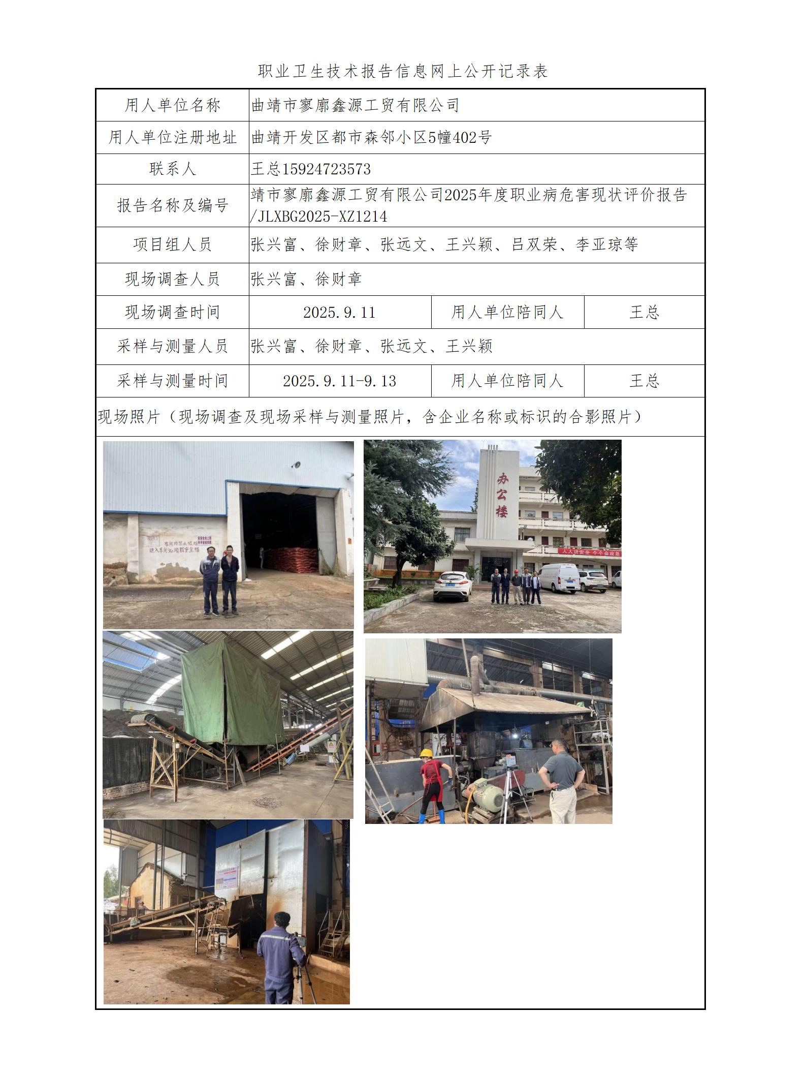 靖市寥廓鑫源工贸有限公司2025年度职业病危害现状评价报告
