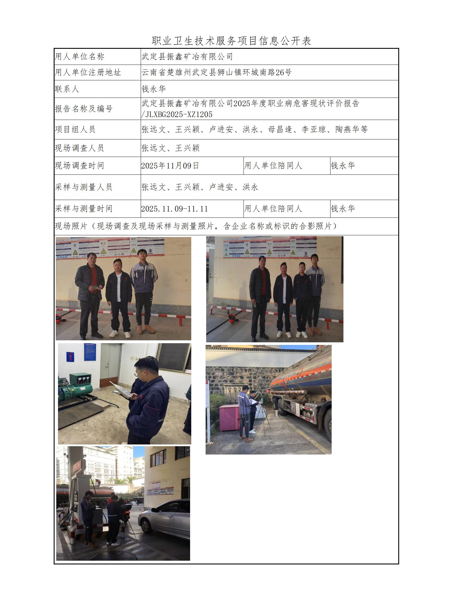 武定县振鑫矿冶有限公司2025年度职业病危害现状评价报告