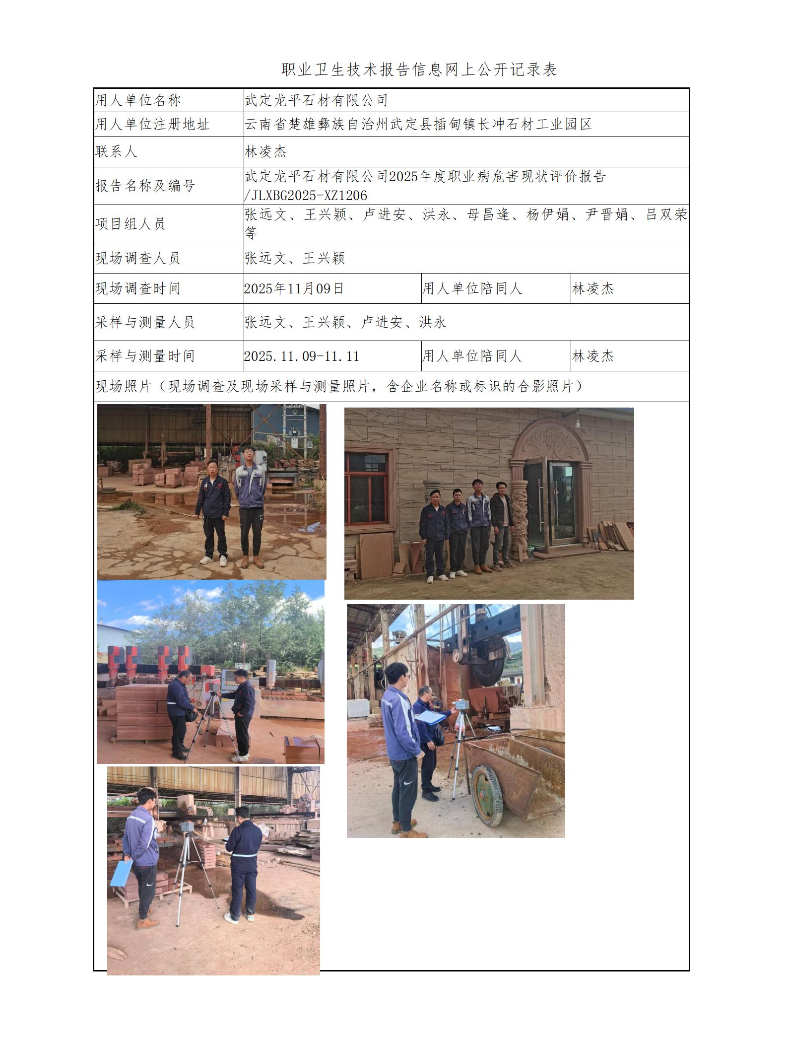 武定龙平石材有限公司2025年度职业病危害现状评价报告