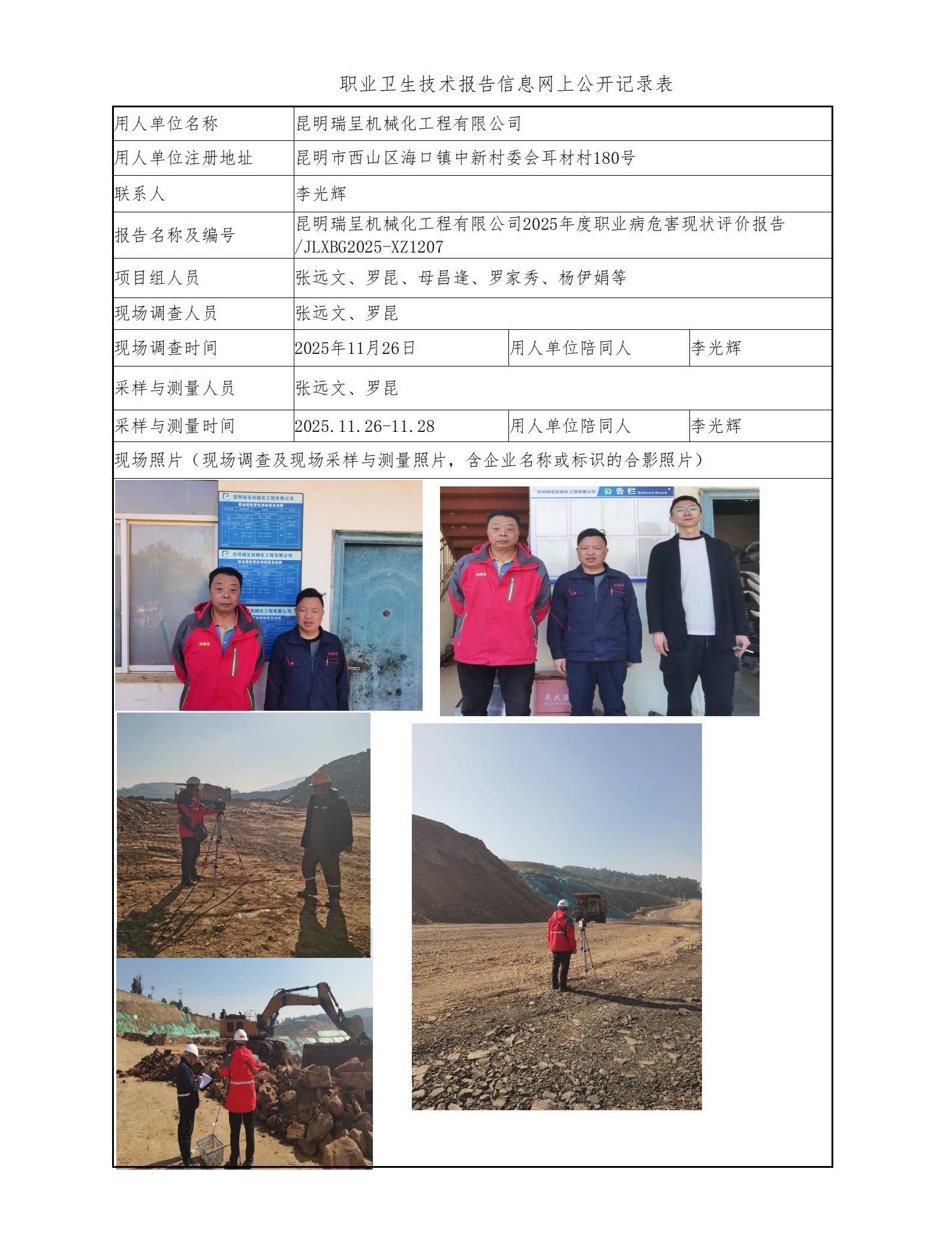 昆明瑞呈机械化工程有限公司2025年度职业病危害现状评价报告