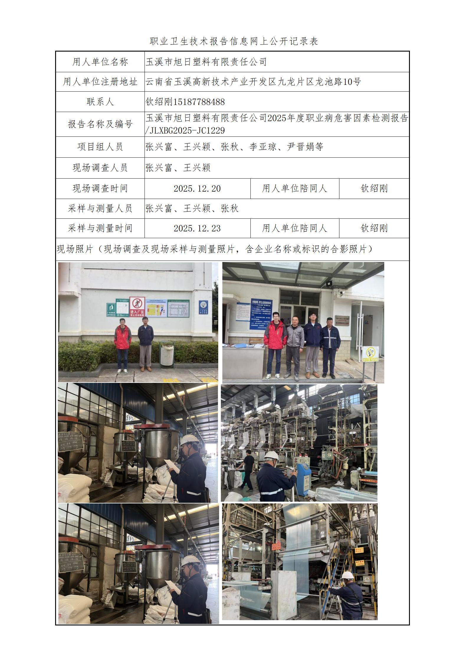 玉溪市旭日塑料有限责任公司2025年度职业病危害因素检测报告