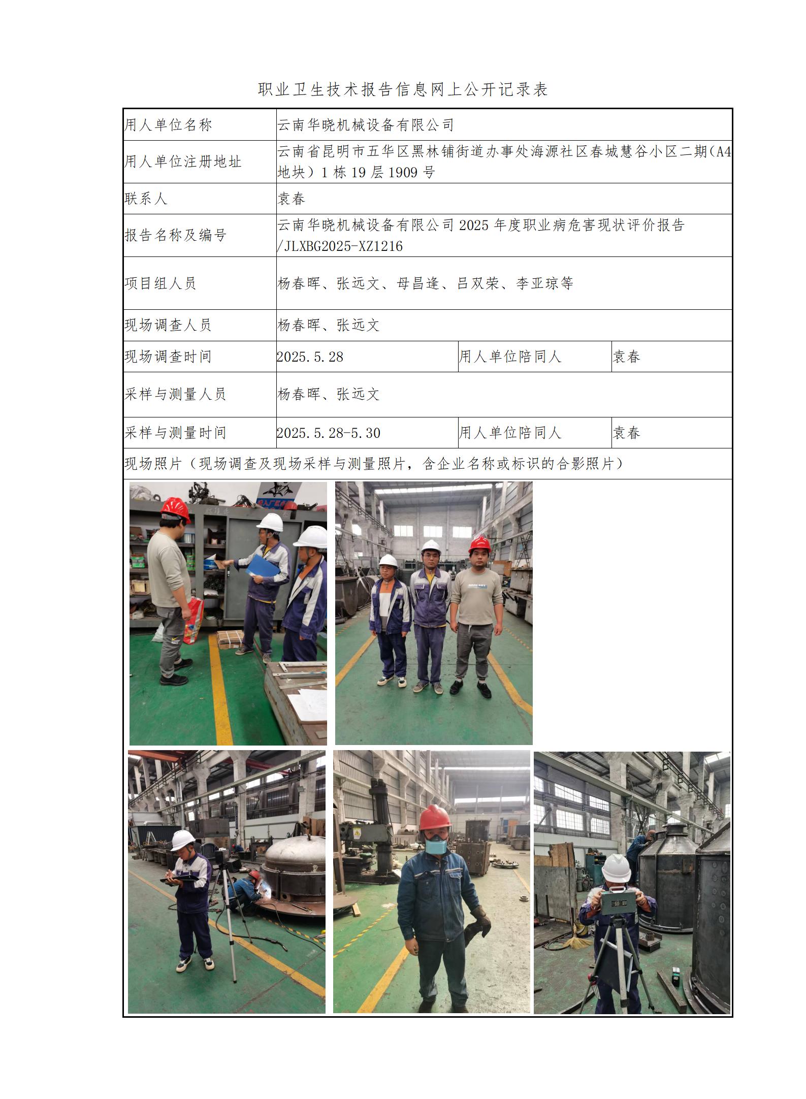 云南华晓机械设备有限公司2025年度职业病危害现状评价报告
