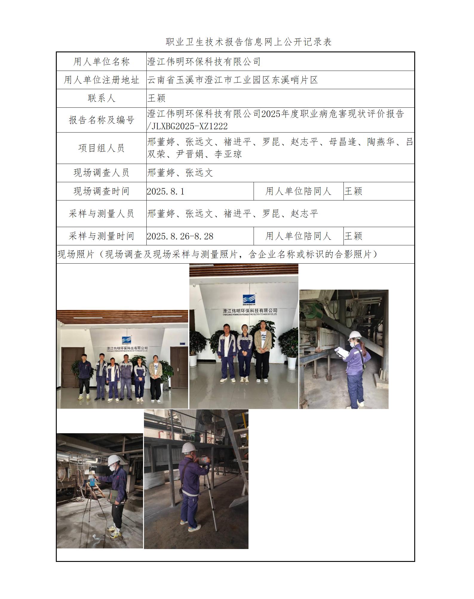澄江伟明环保科技有限公司2025年度职业病危害现状评价报告