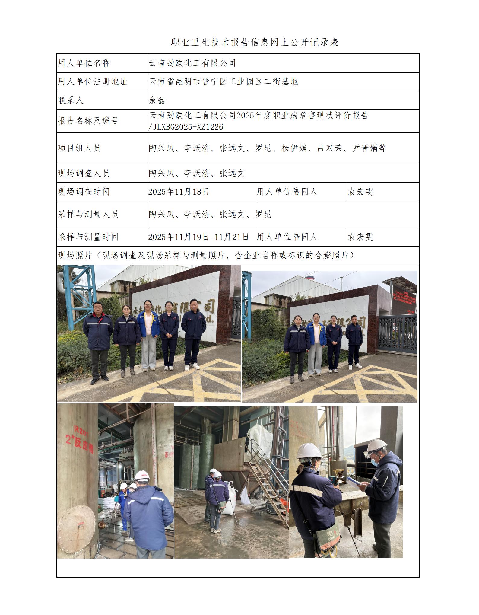 云南劲欧化工有限公司2025年度职业病危害现状评价报告
