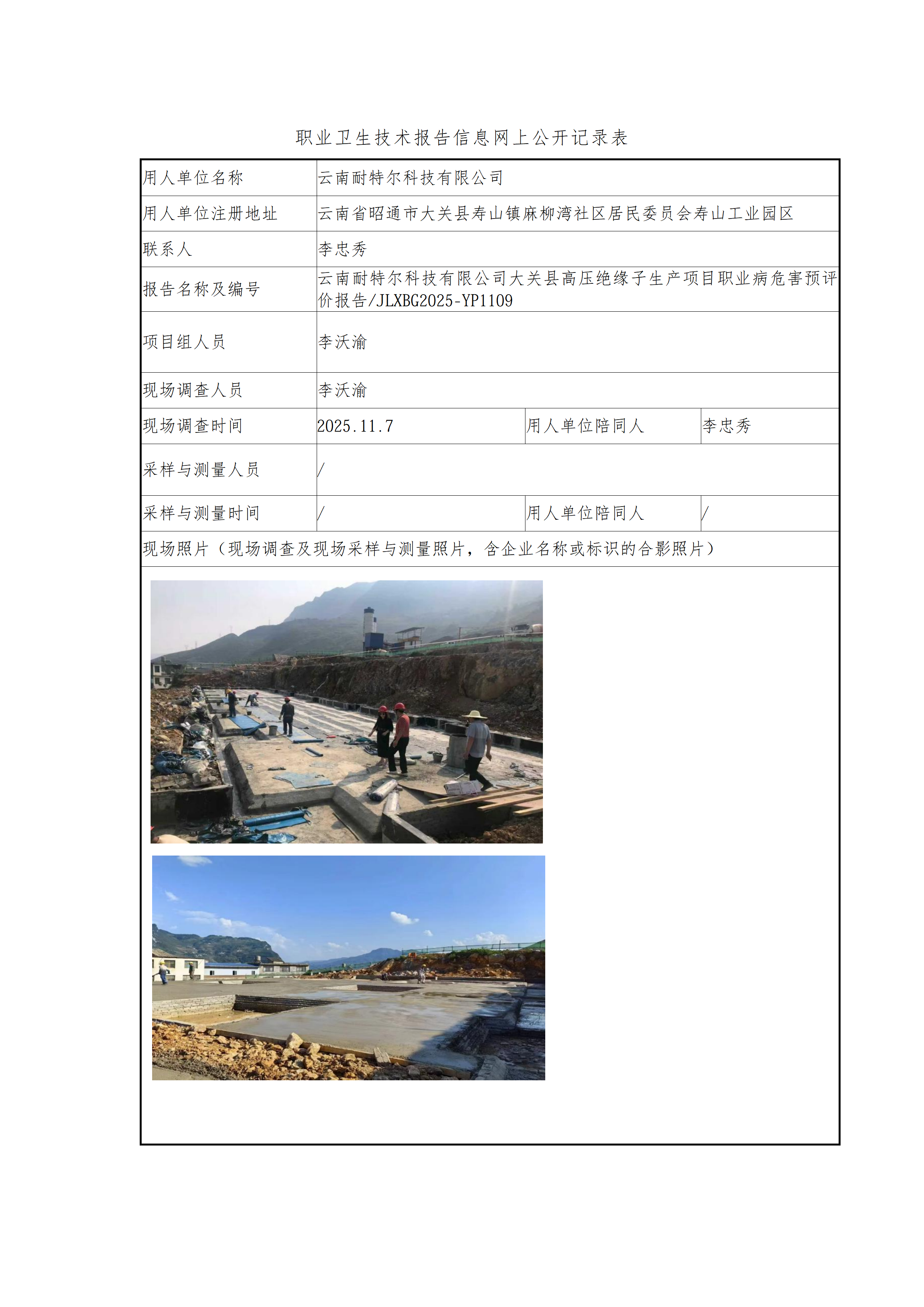 云南耐特尔科技有限公司大关县高压绝缘子生产项目职业病危害预评价报告