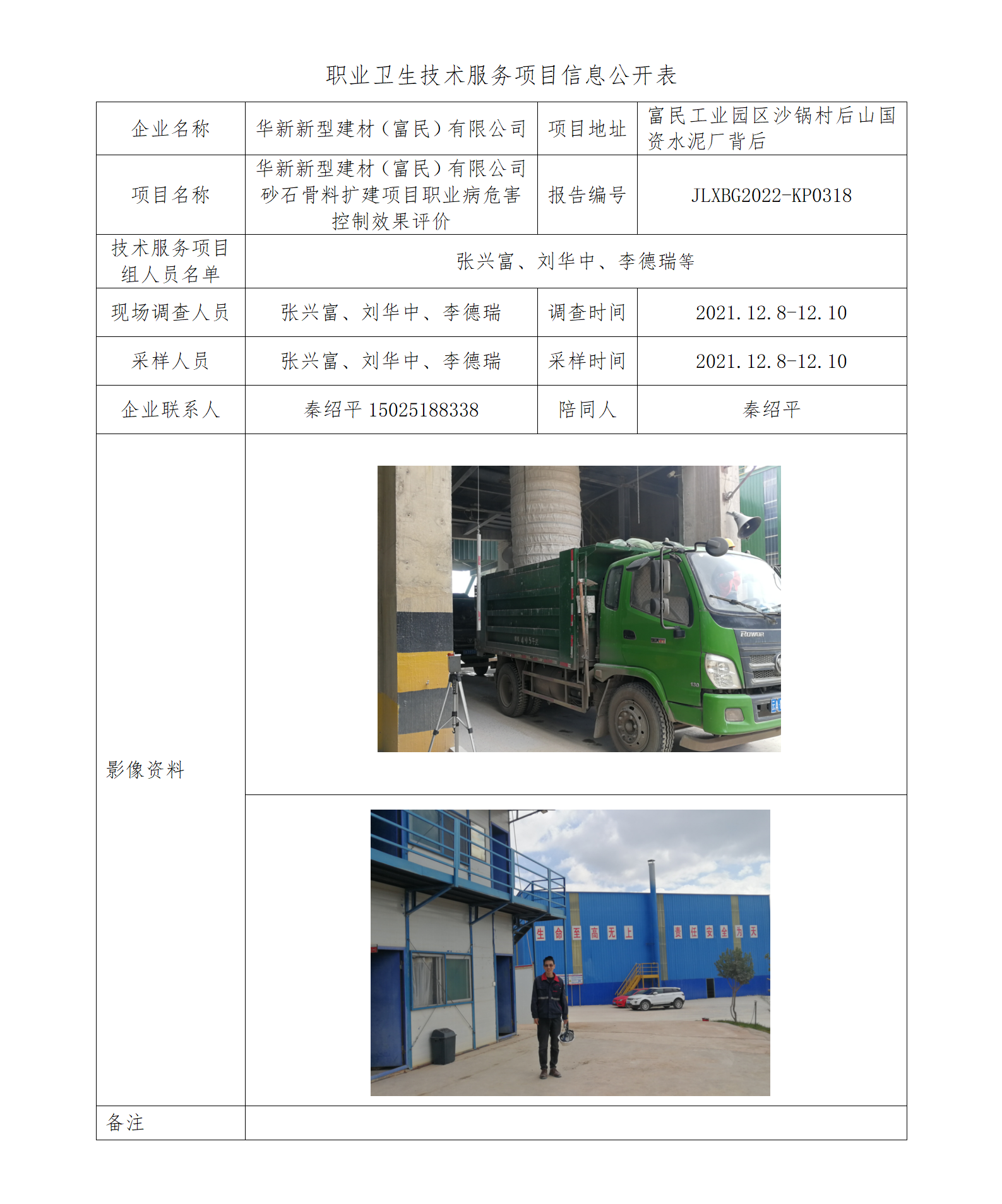 华新新型建材(富民)有限公司砂石骨料扩建项目职业病危害控制效果评价