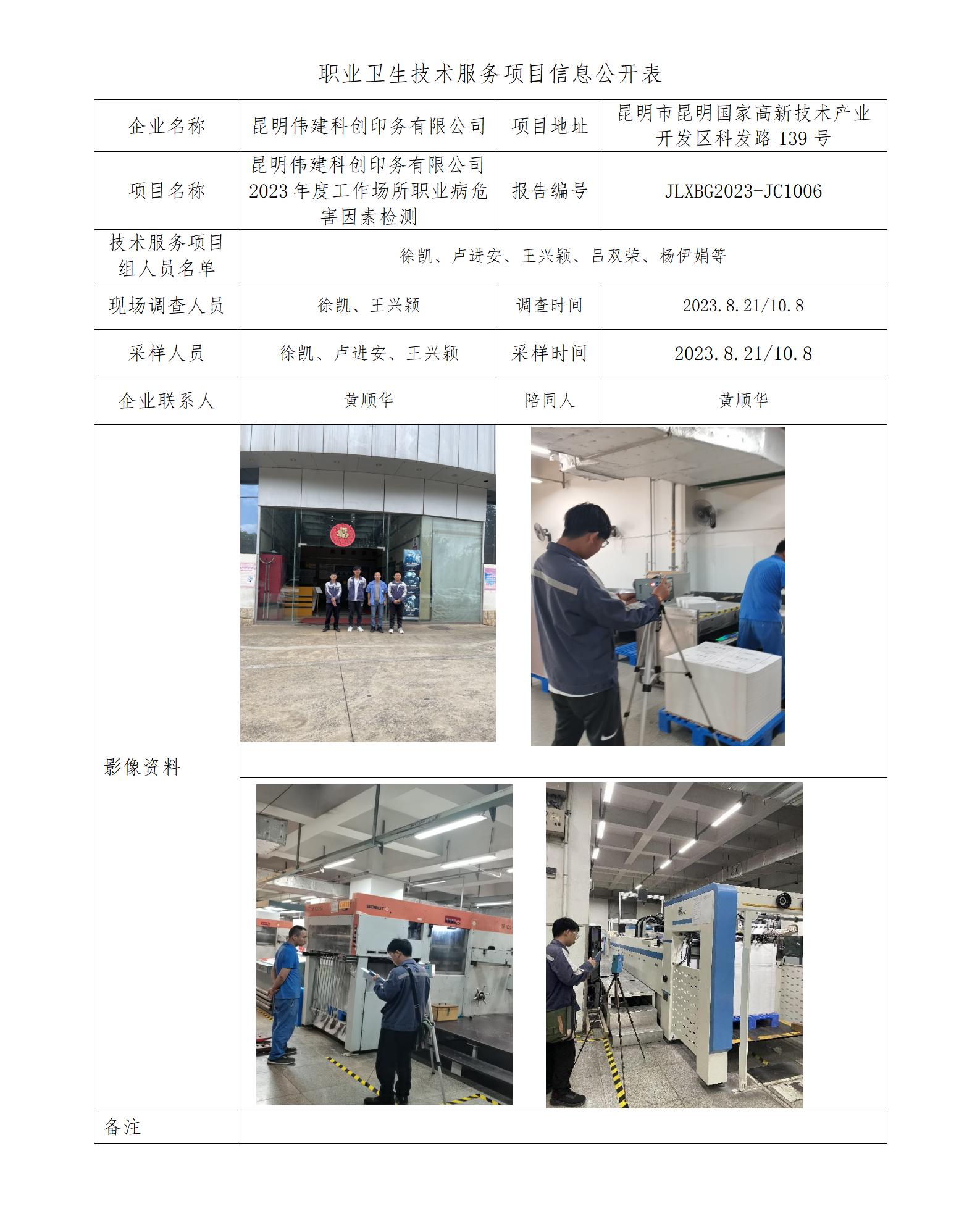 昆明伟建科创印务有限公司2023年度工作场所职业病危害因素检测