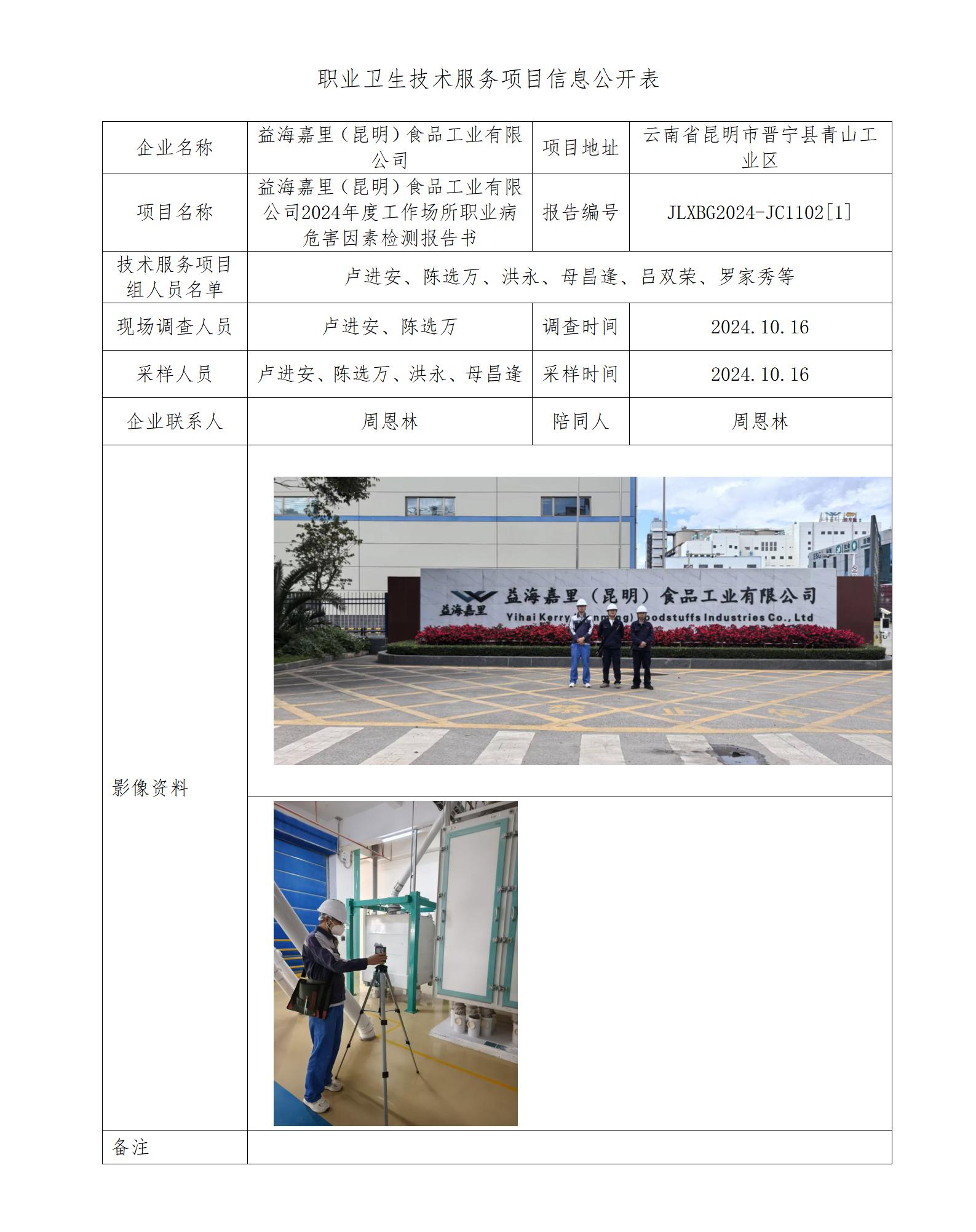 益海嘉里(昆明)食品工业有限公司2024年度工作场所职业病危害因素检测报告书