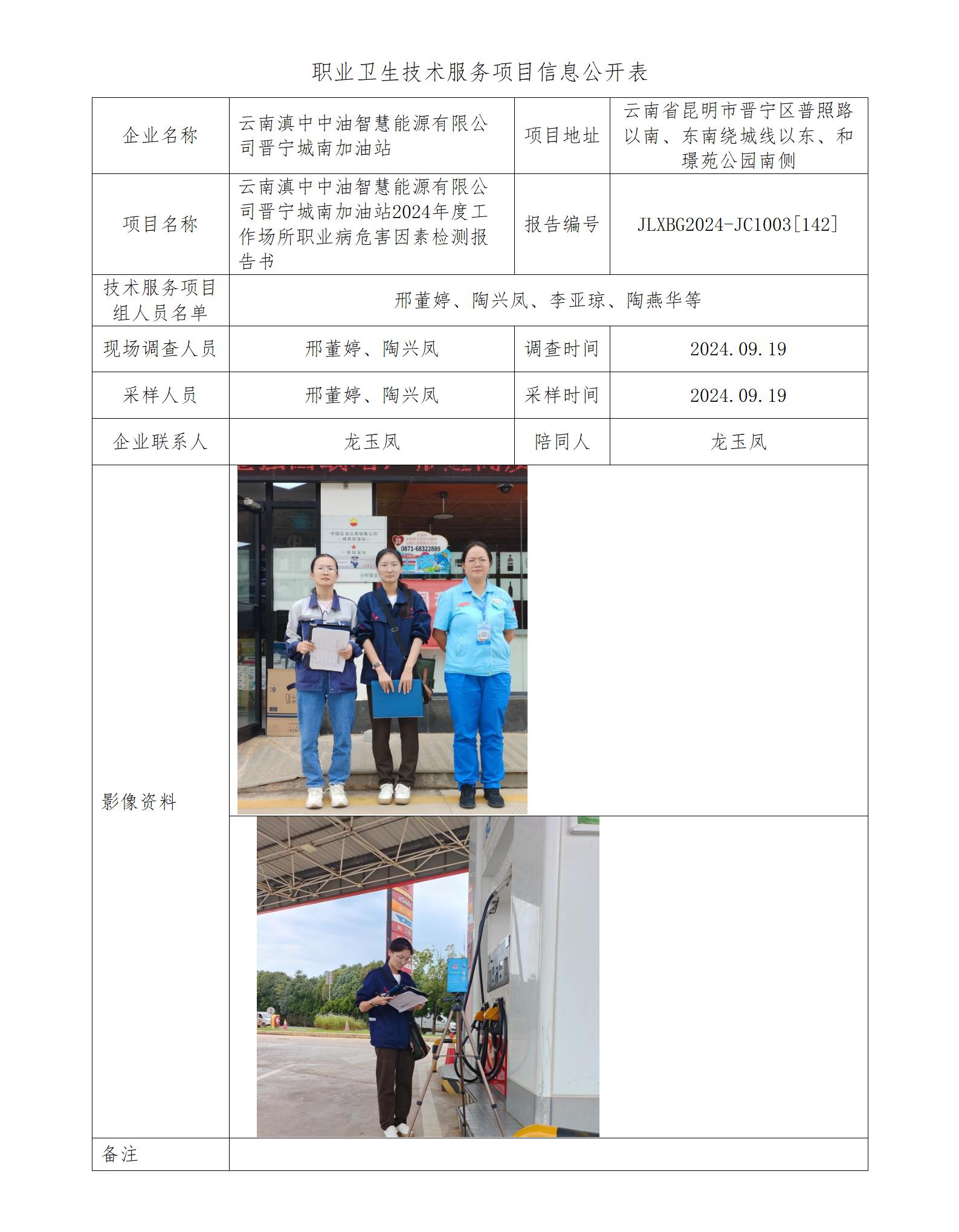 云南滇中中油智慧能源有限公司晋宁城南加油站2024年度工作场所职业病危害因素检测报告书