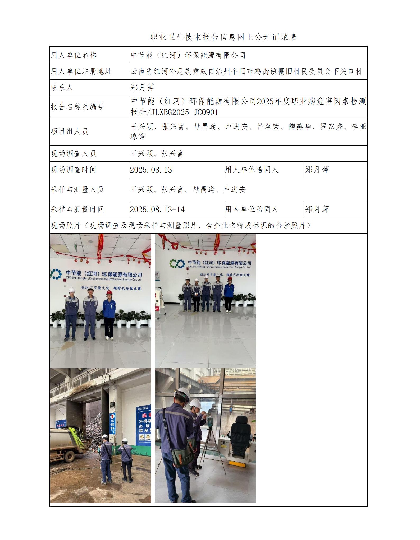 中节能(红河)环保能源有限公司2025年度职业病危害因素检测报告