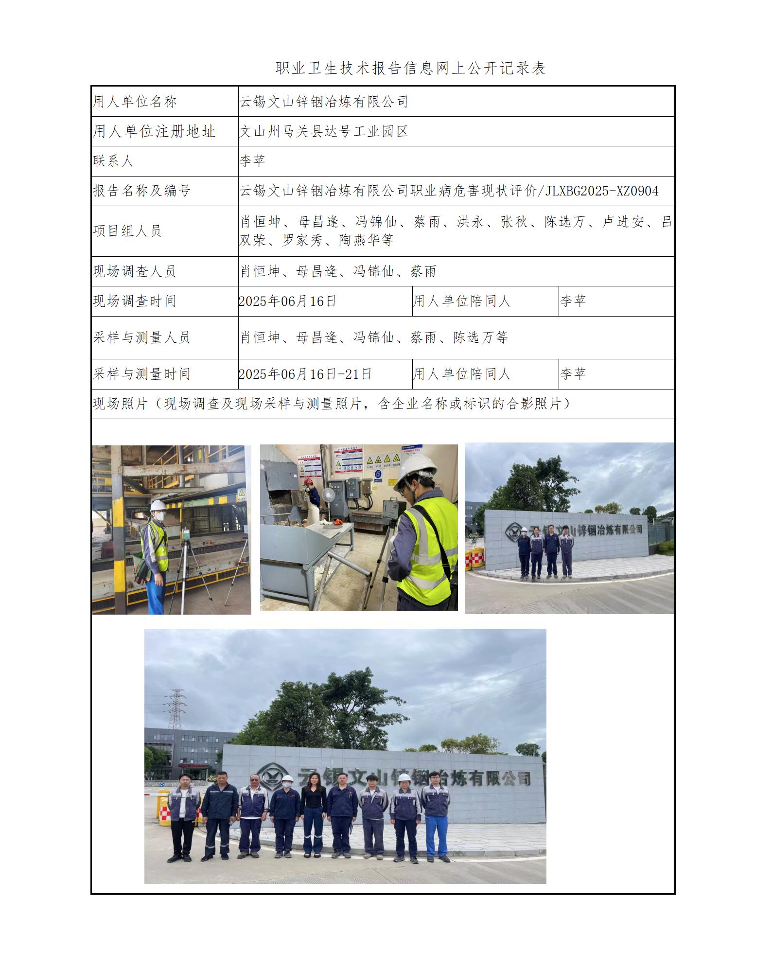 云锡文山锌铟冶炼有限公司职业病危害现状评价