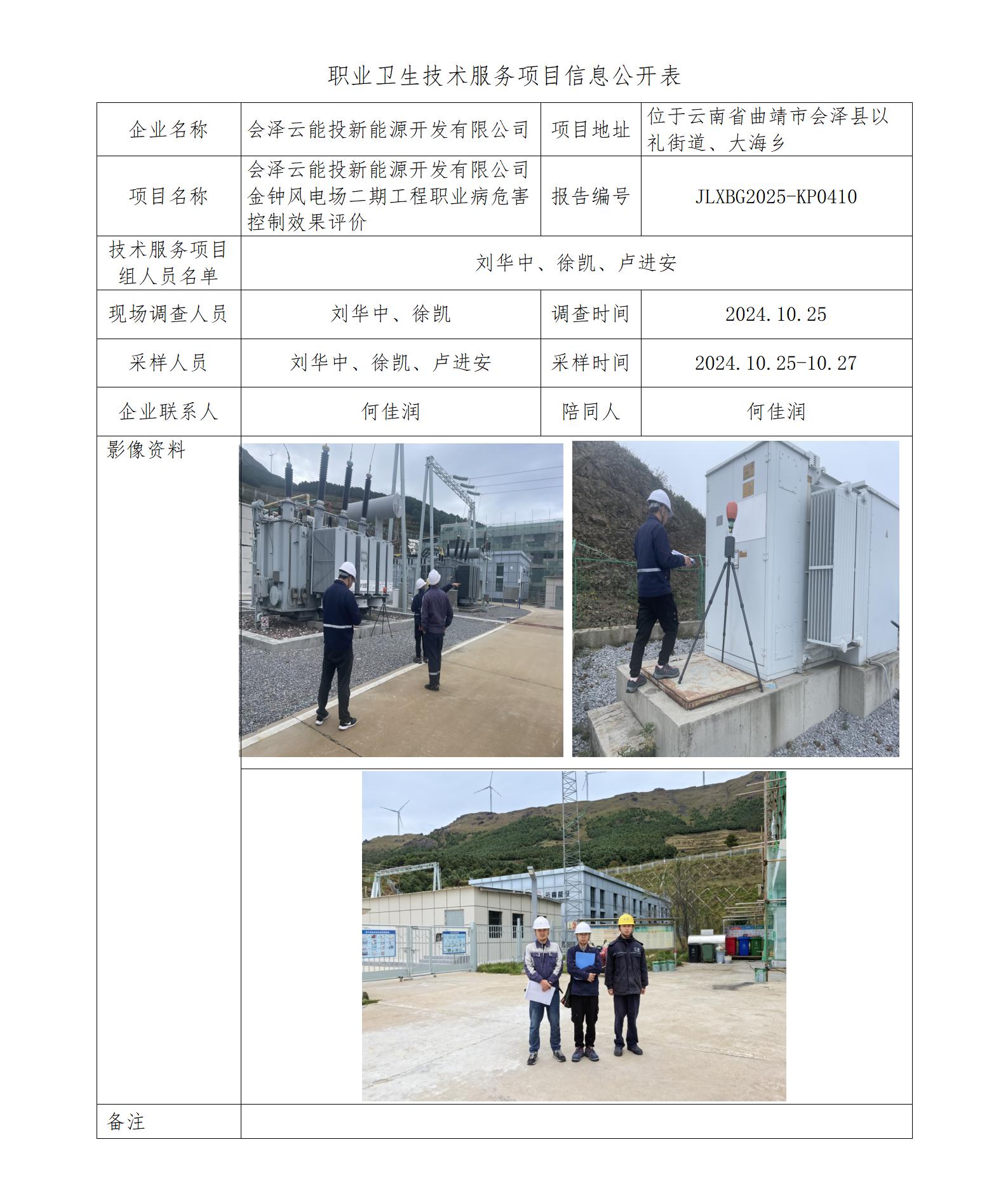 会泽云能投新能源开发有限公司金钟风电场二期工程职业病危害控制效果评价