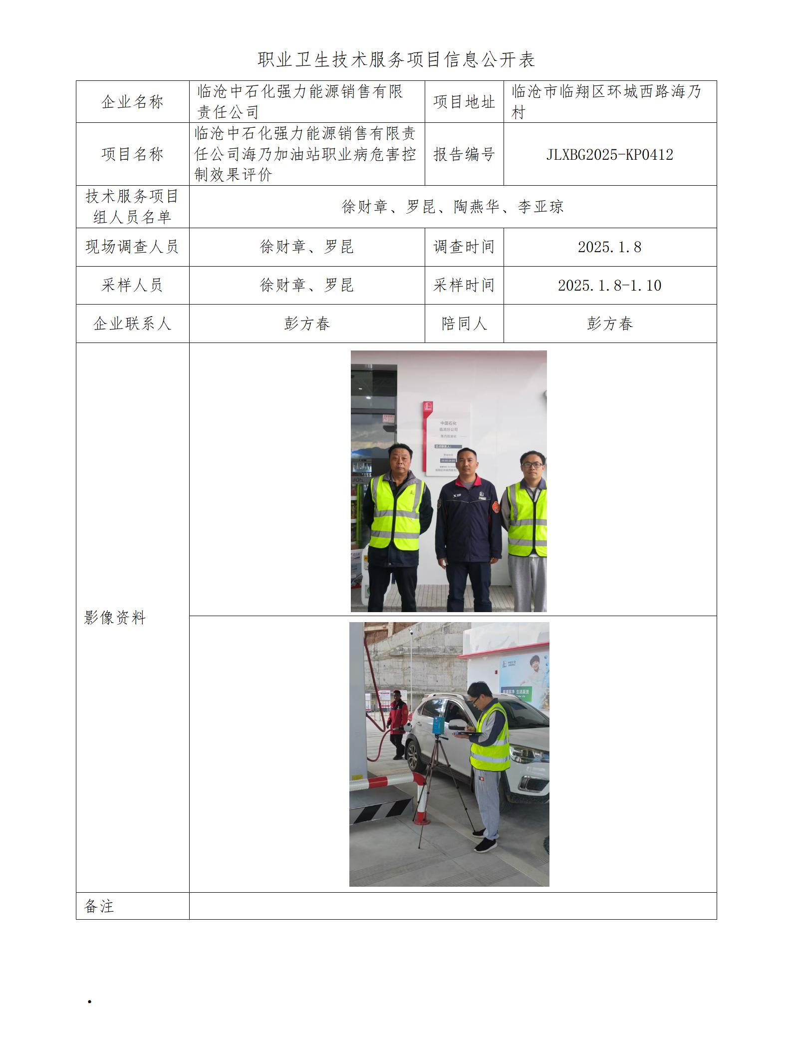 临沧中石化强力能源销售有限责任公司海乃加油站职业病危害控制效果评价