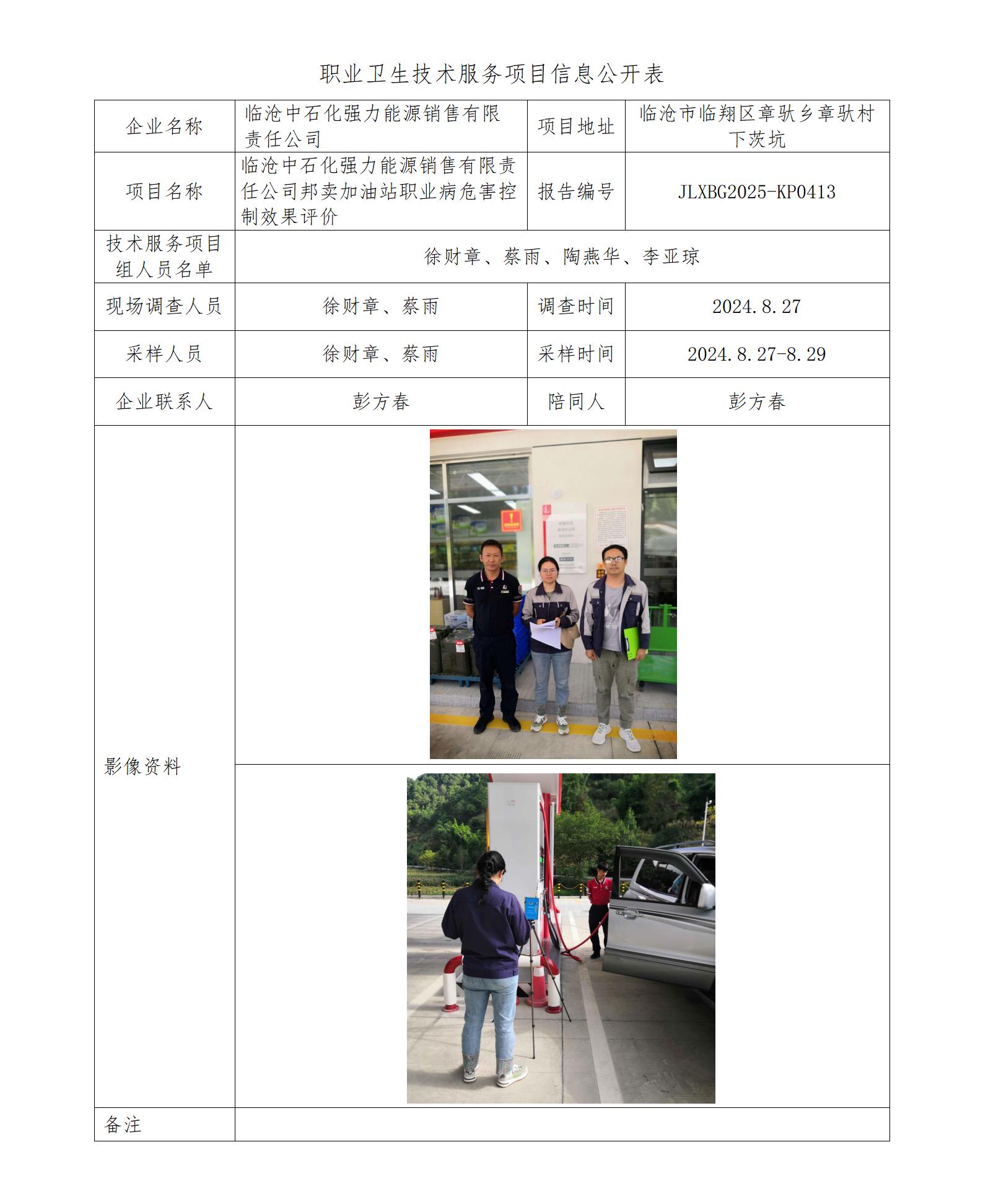 临沧中石化强力能源销售有限责任公司邦卖加油站职业病危害控制效果评价