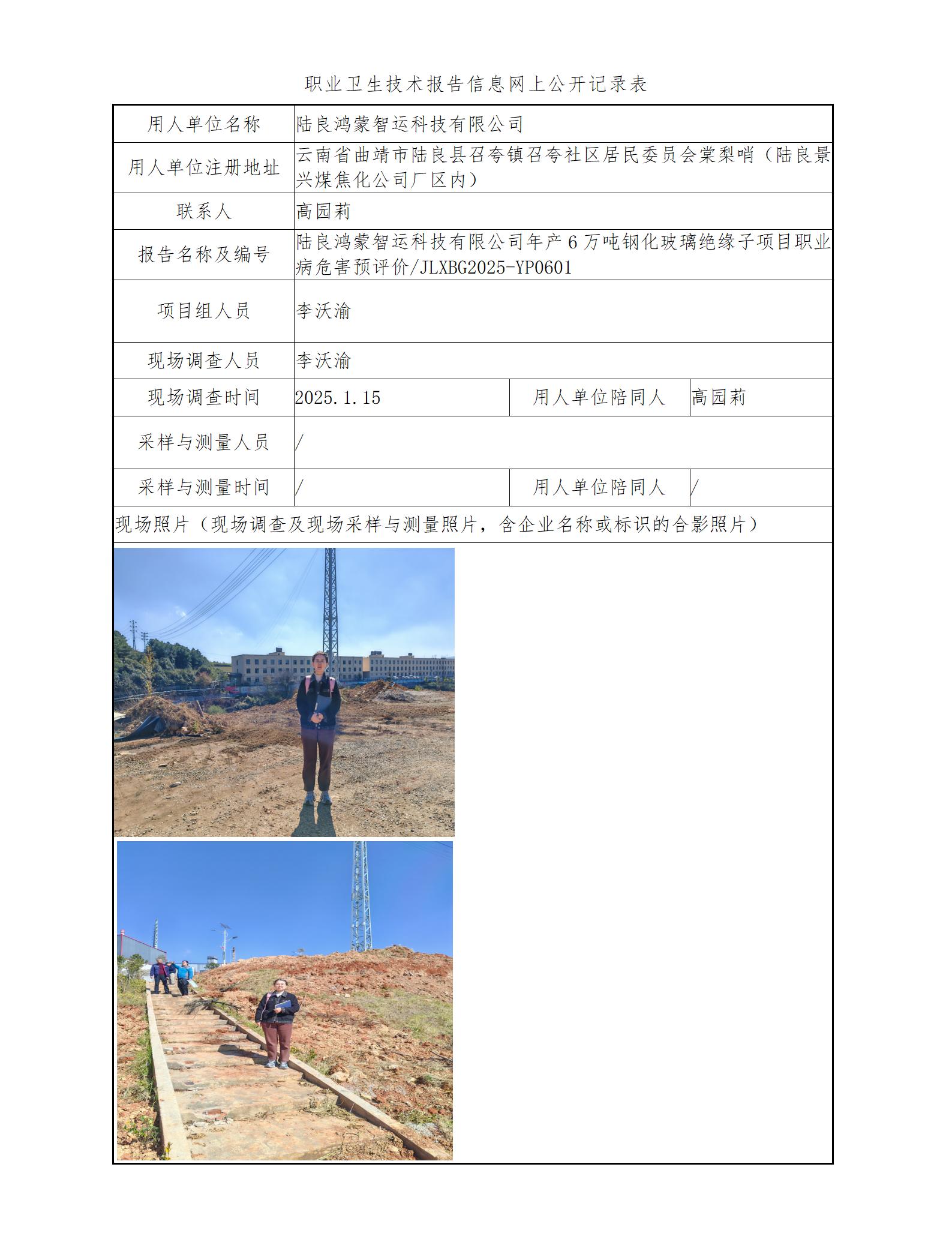 陆良鸿蒙智运科技有限公司年产6万吨钢化玻璃绝缘子项目职业病危害预评价