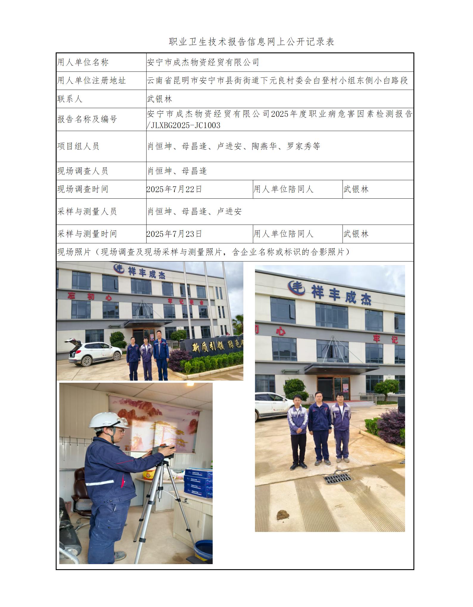 安宁市成杰物资经贸有限公司2025年度职业病危害因素检测报告