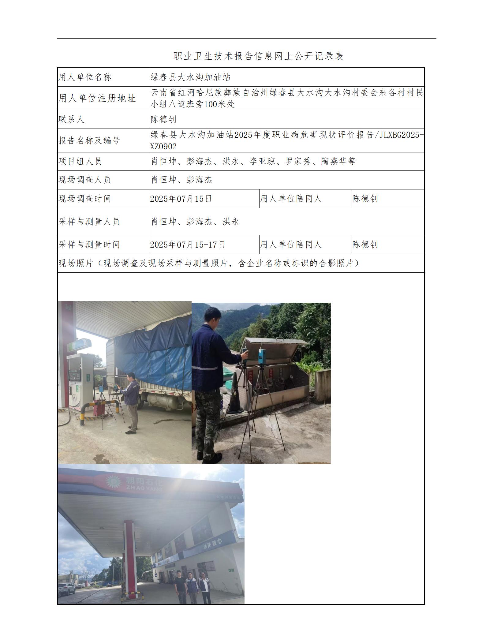 绿春县大水沟加油站2025年度职业病危害现状评价报告