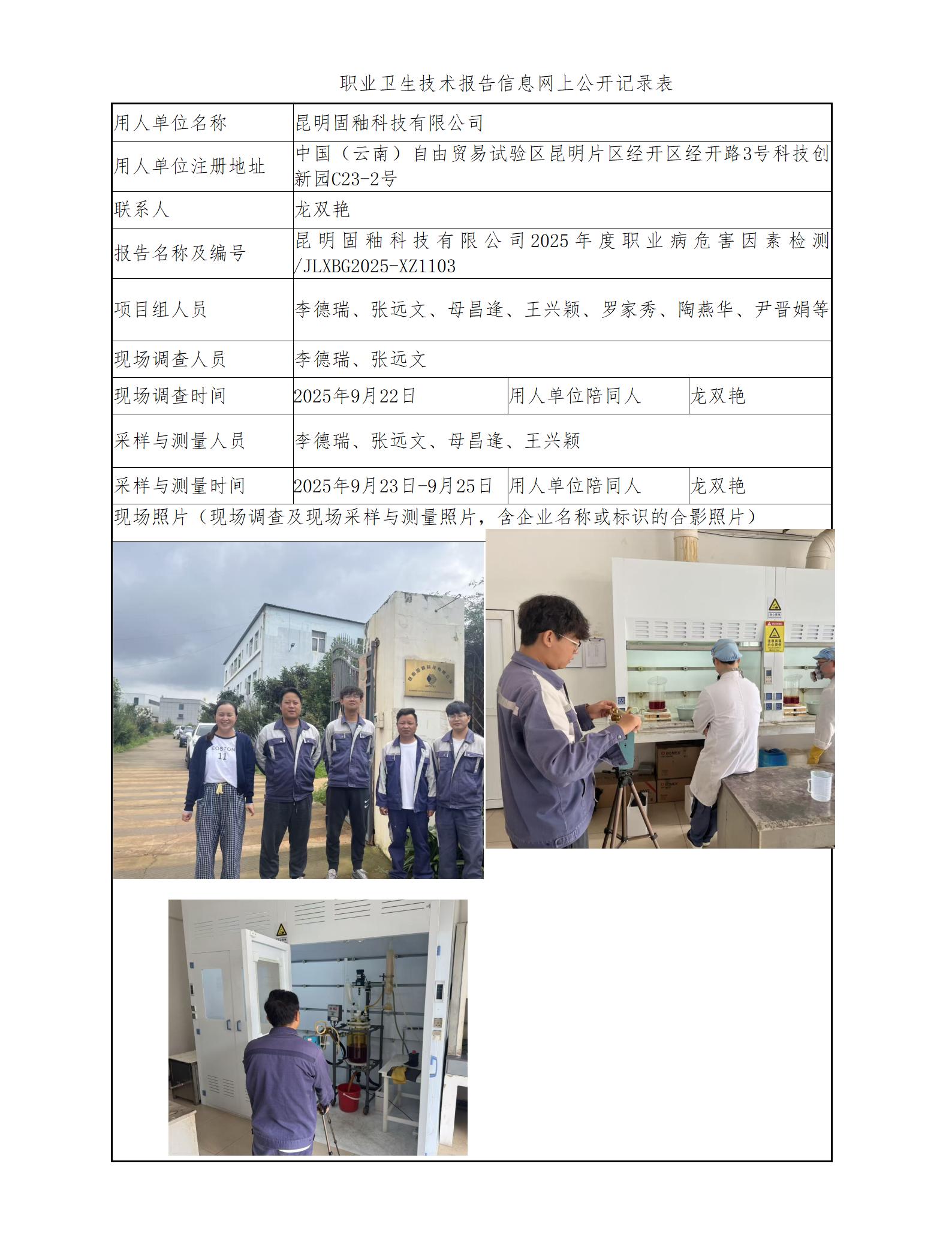 昆明固釉科技有限公司2025年度职业病危害因素检测