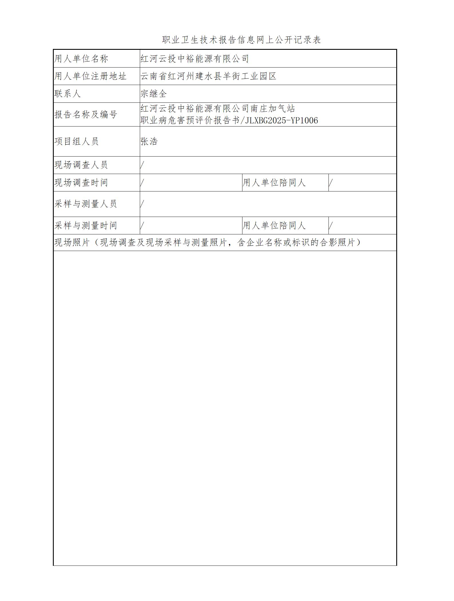 红河云投中裕能源有限公司南庄加气站 职业病危害预评价报告书