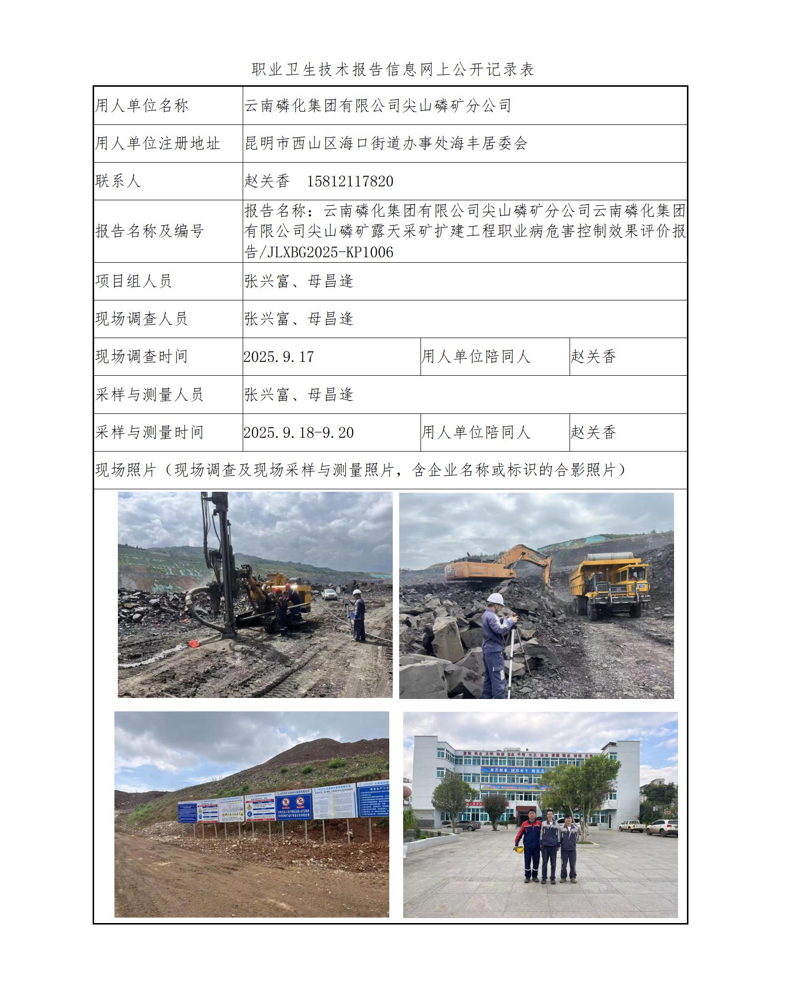 云南磷化集团有限公司尖山磷矿分公司云南磷化集团有限公司尖山磷矿露天采矿扩建工程职业病危害控制效果评价报告