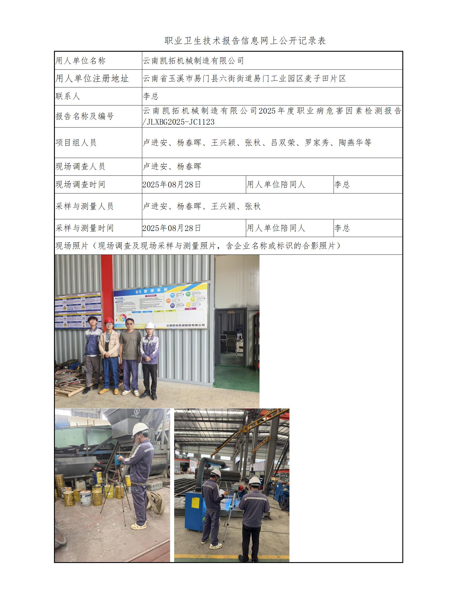 云南凯拓机械制造有限公司2025年度职业病危害因素检测报告