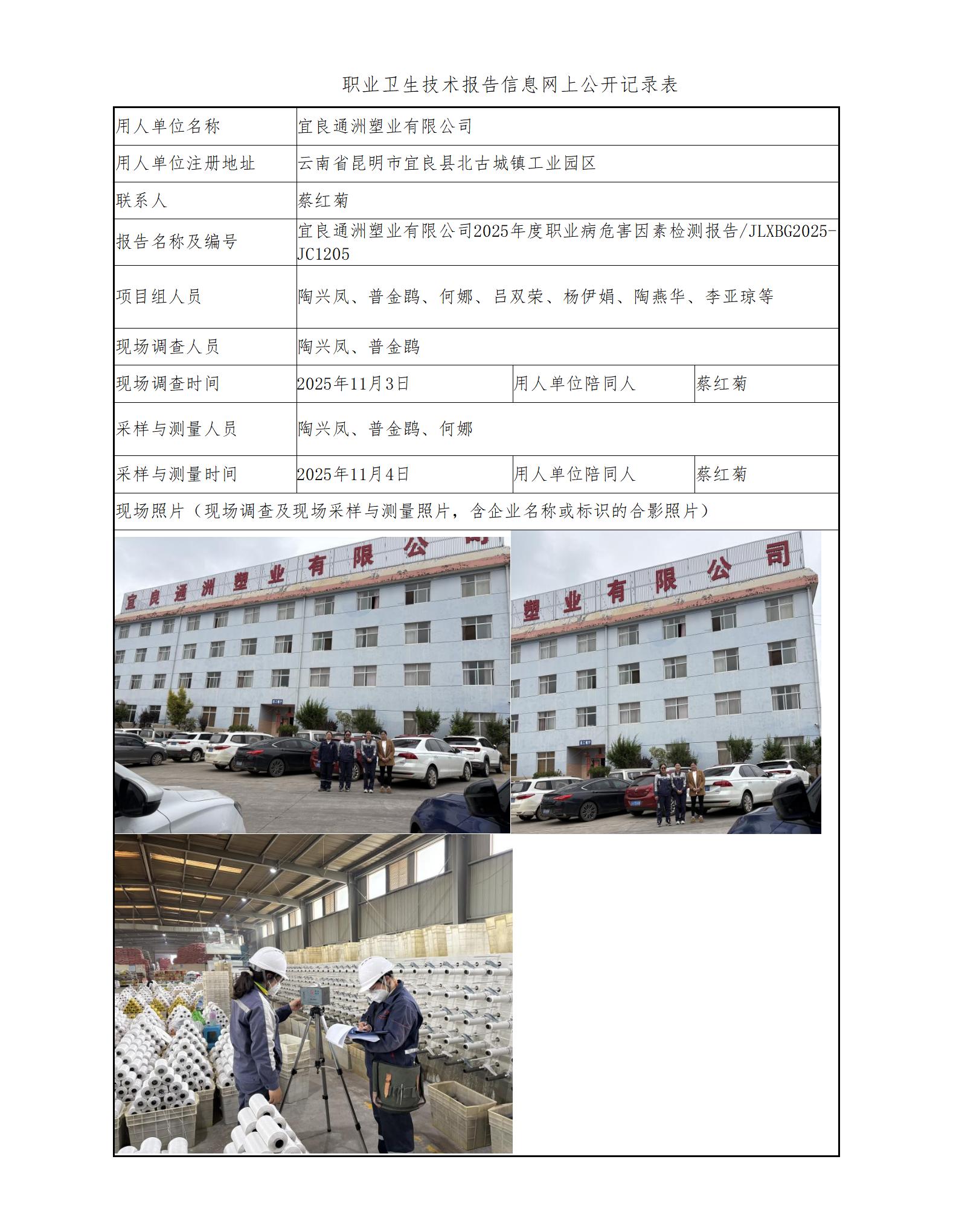 宜良通洲塑业有限公司2025年度职业病危害因素检测报告