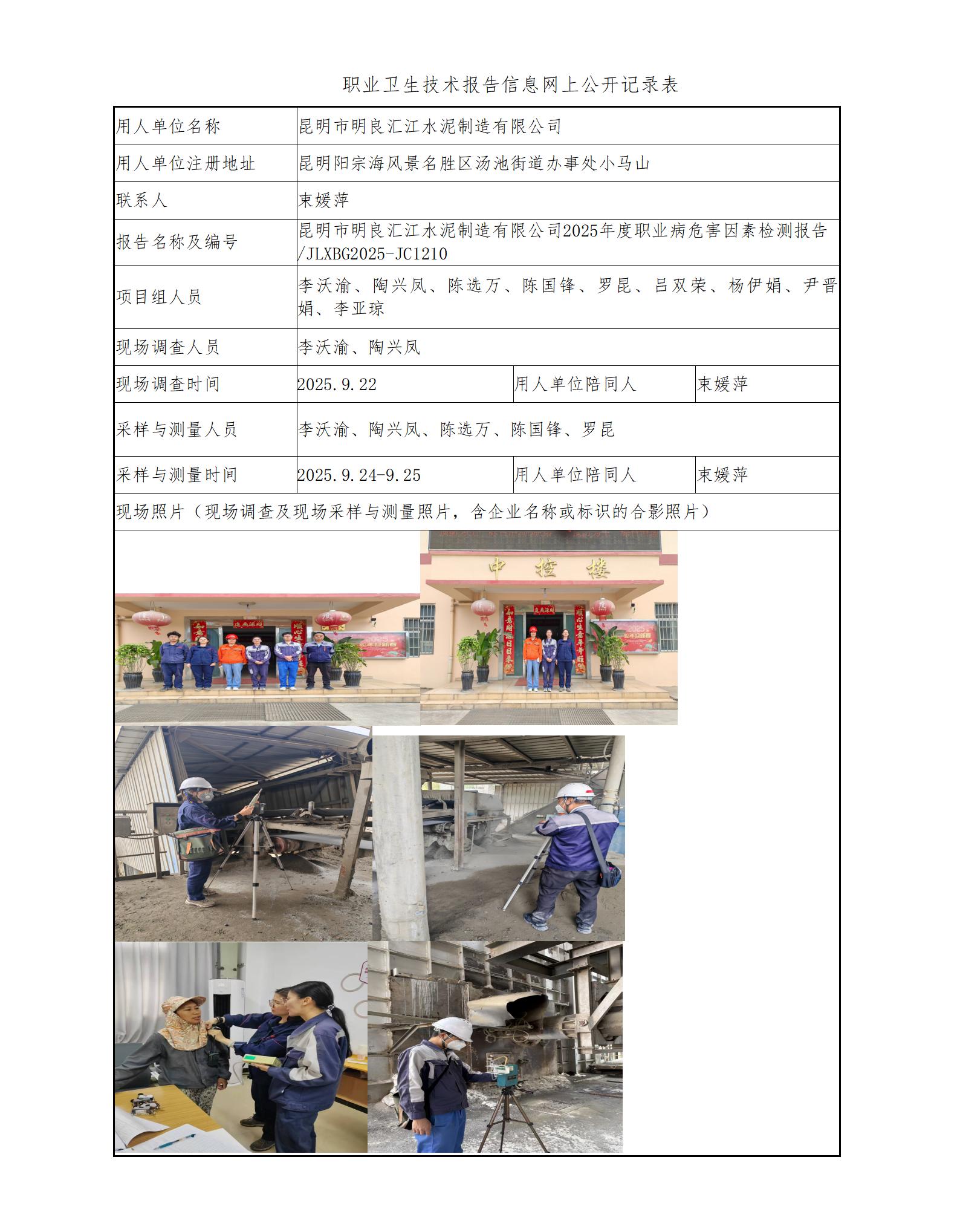 昆明市明良汇江水泥制造有限公司2025年度职业病危害因素检测报告
