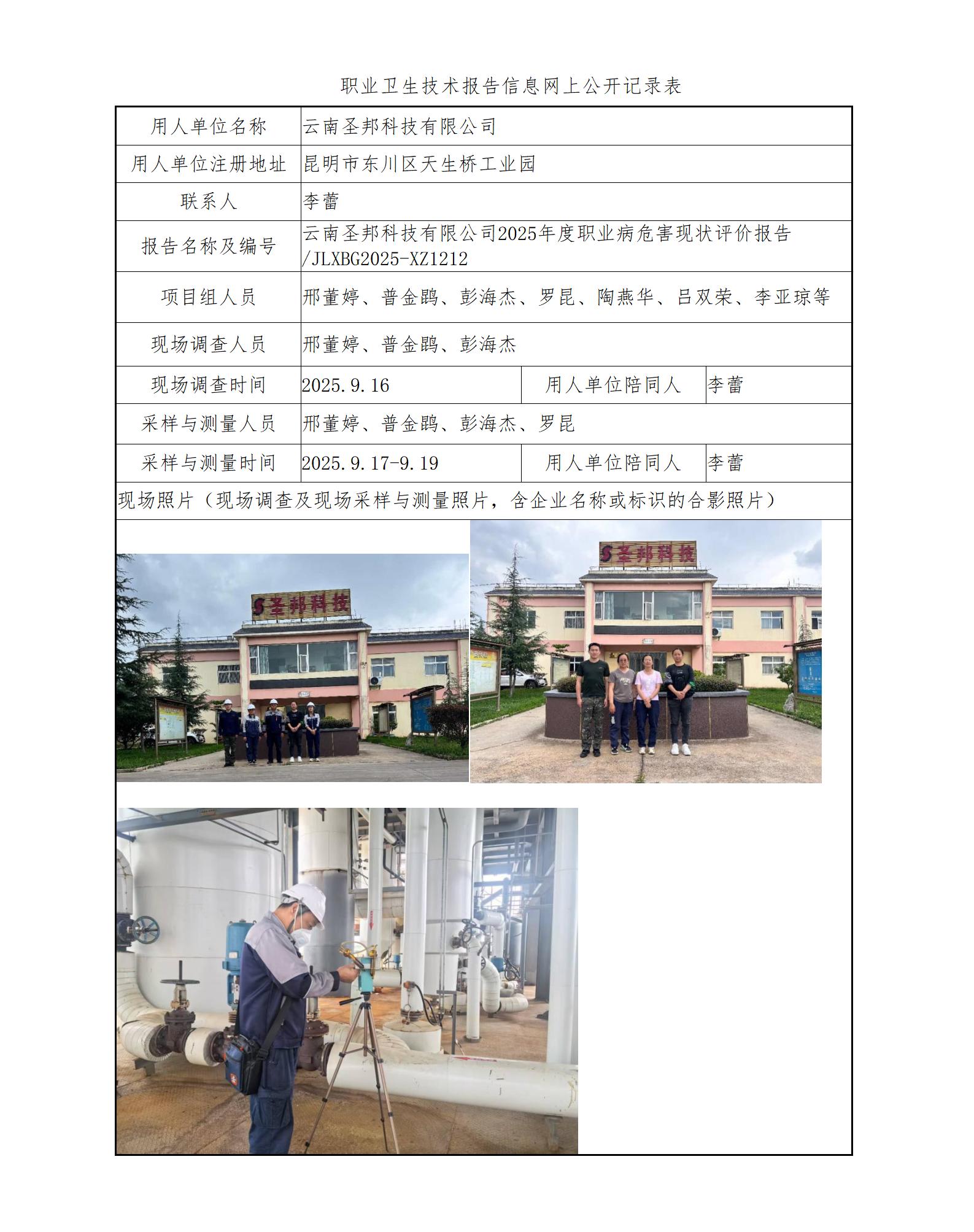 云南圣邦科技有限公司2025年度职业病危害现状评价报告
