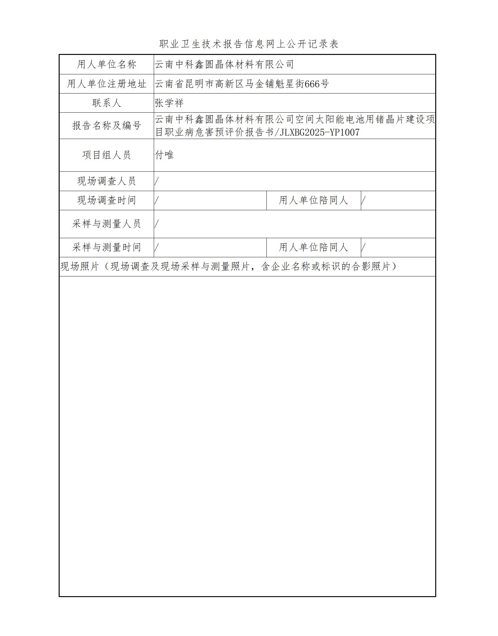 云南中科鑫圆晶体材料有限公司空间太阳能电池用锗晶片建设项目职业病危害预评价报告书