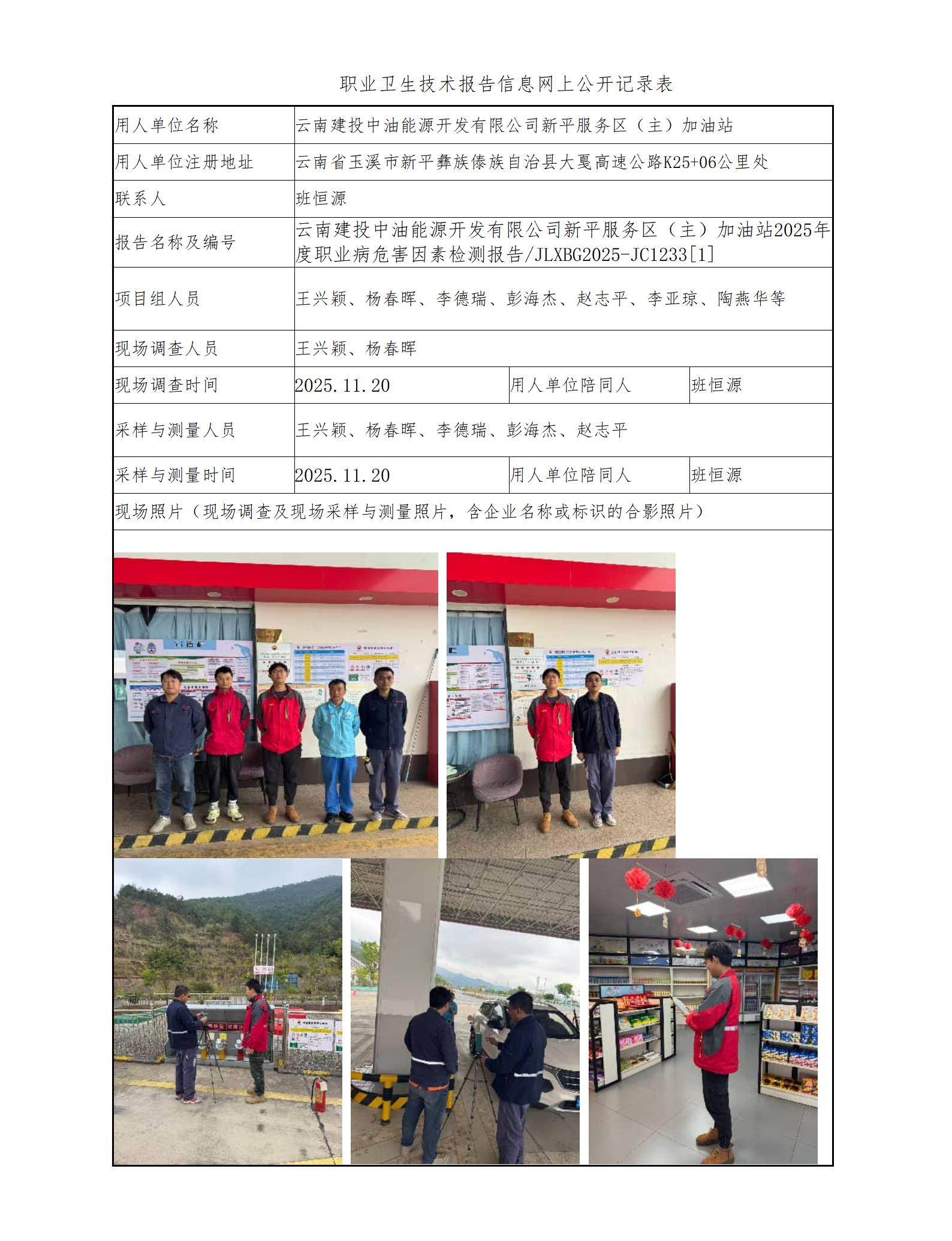 云南建投中油能源开发有限公司新平服务区(主)加油站2025年度职业病危害因素检测报告