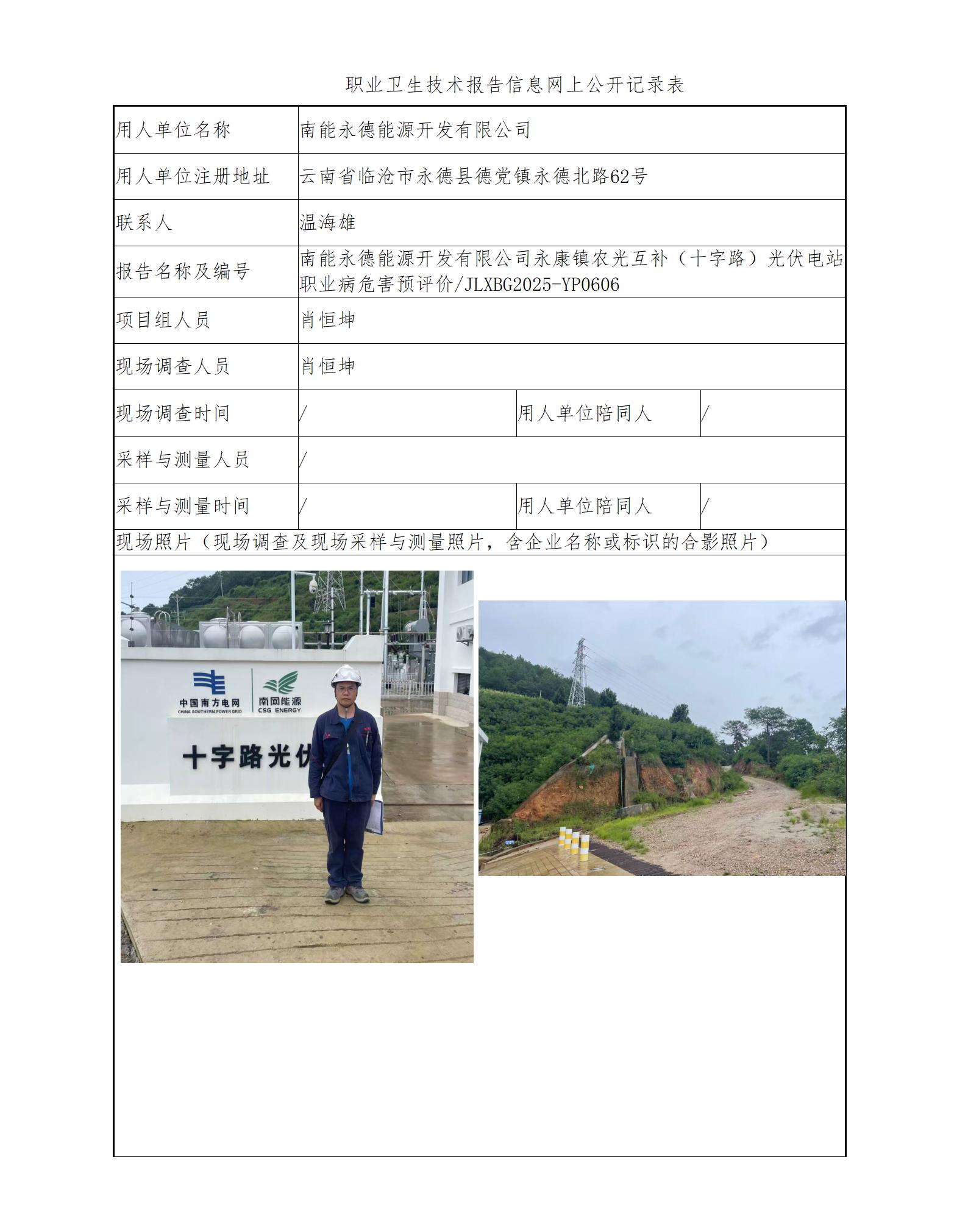 南能永德能源开发有限公司永康镇农光互补(十字路)光伏电站职业病危害预评价