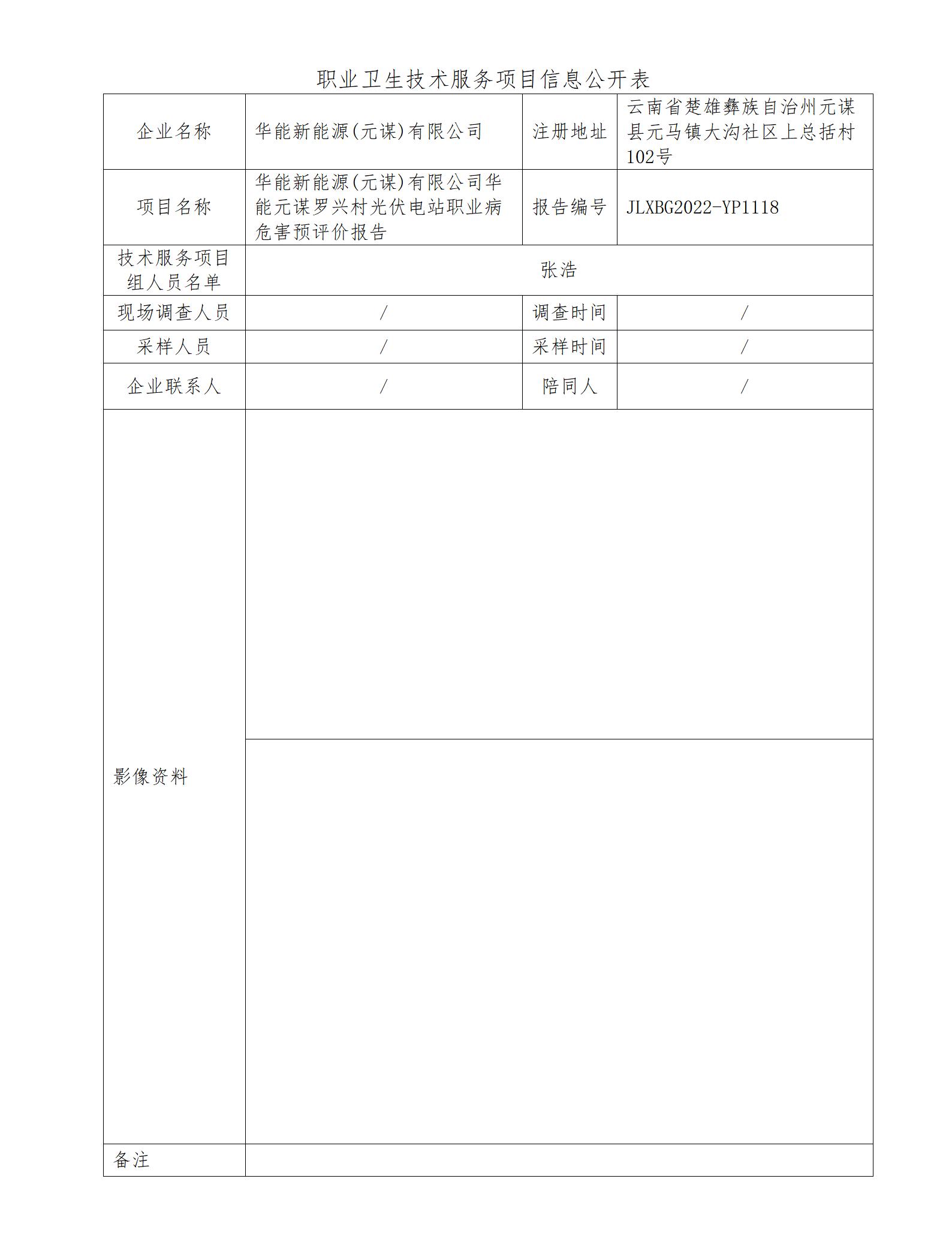 华能新能源(元谋)有限公司华能元谋罗兴村光伏电站职业病危害预评价报告