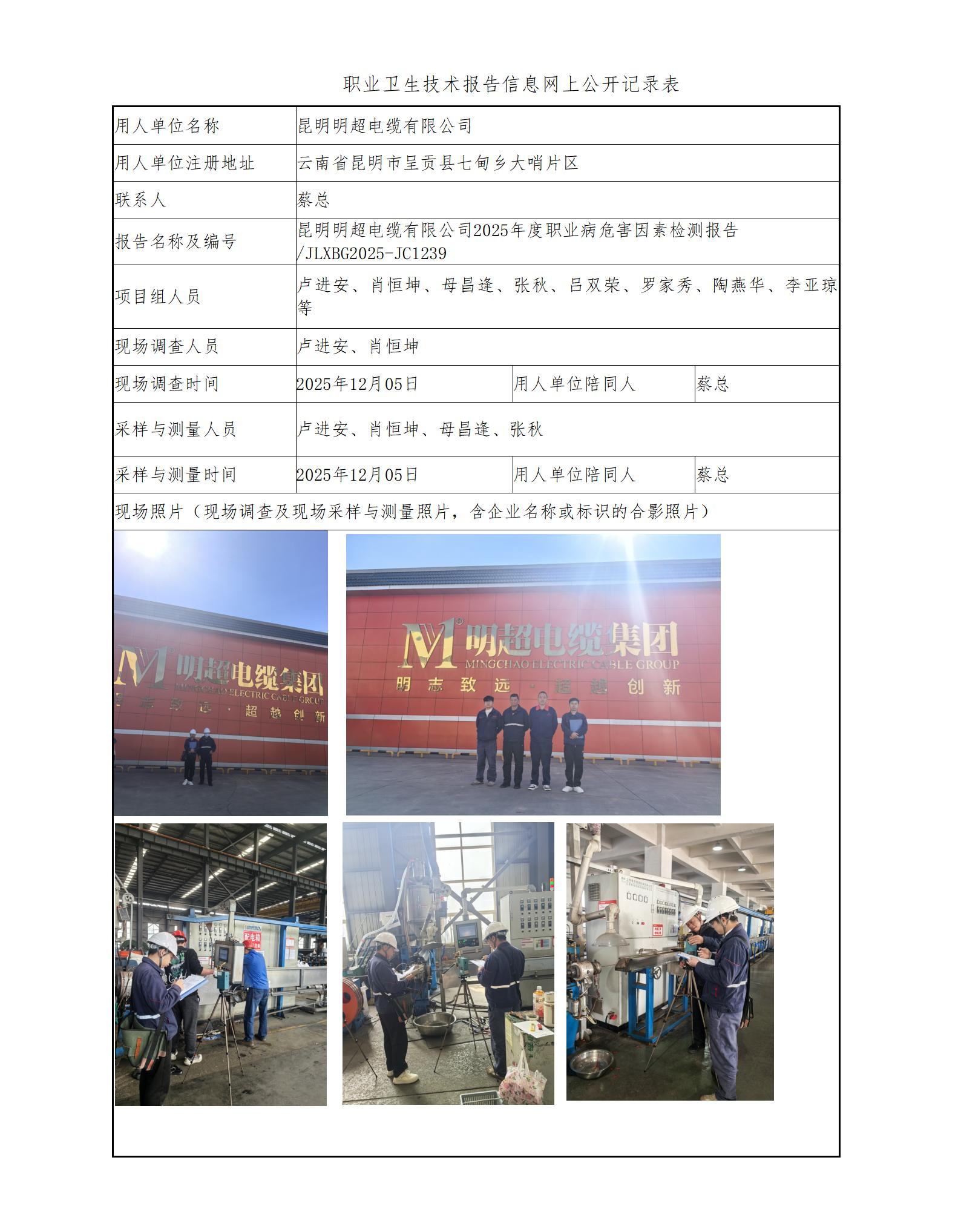 昆明明超电缆有限公司2025年度职业病危害因素检测报告