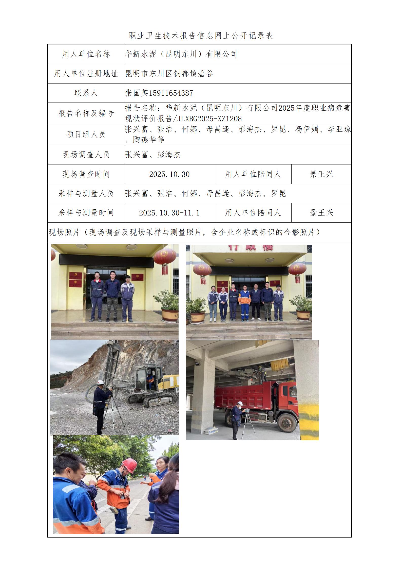 华新水泥(昆明东川)有限公司2025年度职业病危害现状评价报告