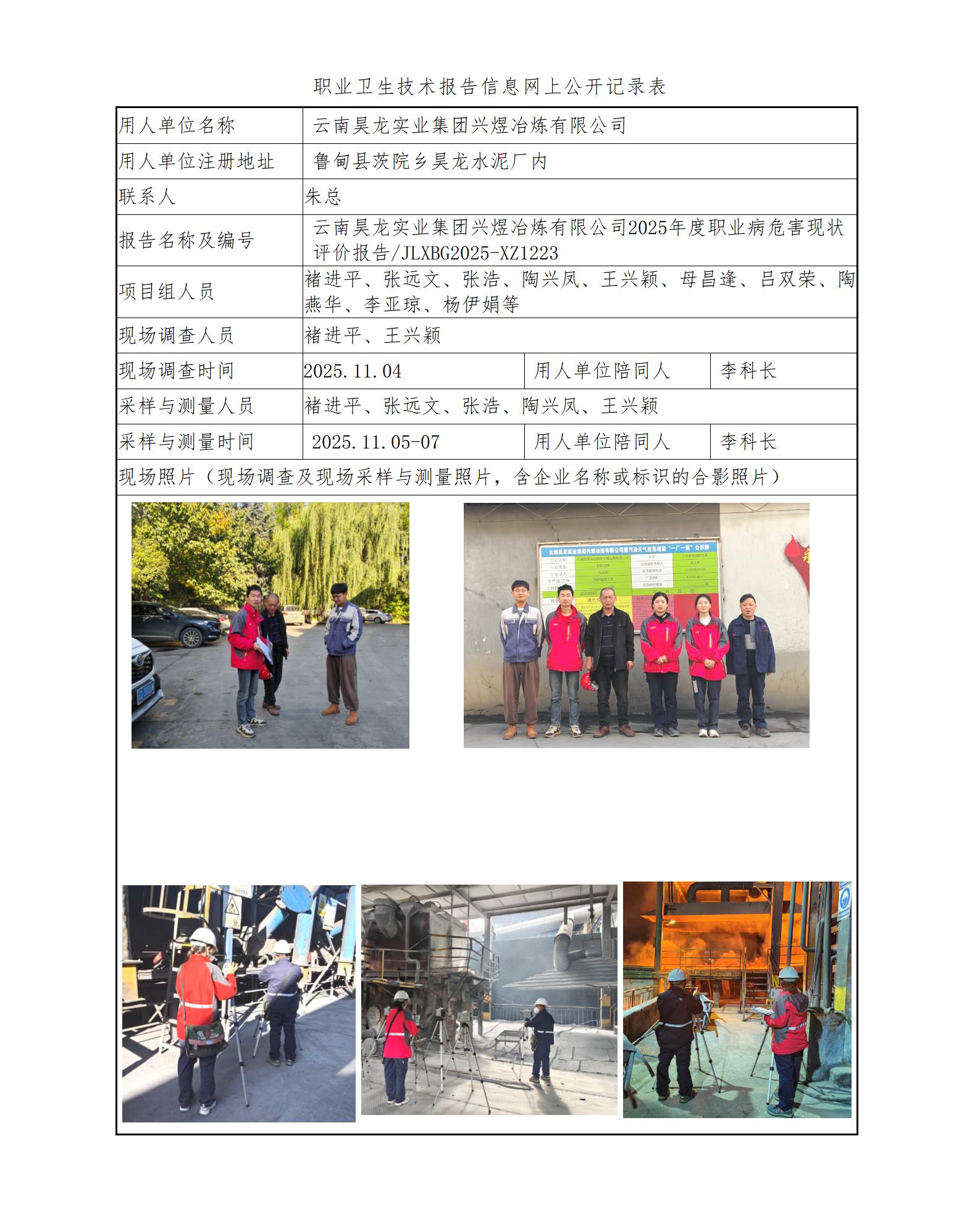 云南昊龙实业集团兴煜冶炼有限公司2025年度职业病危害现状评价报告