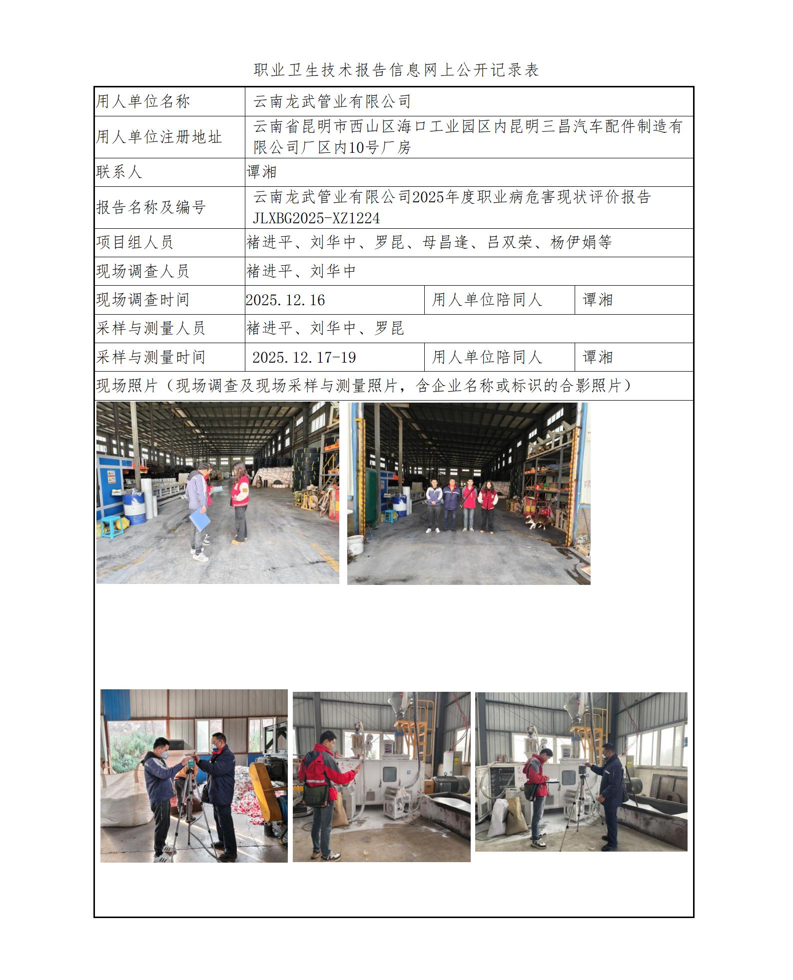 云南龙武管业有限公司2025年度职业病危害现状评价报告